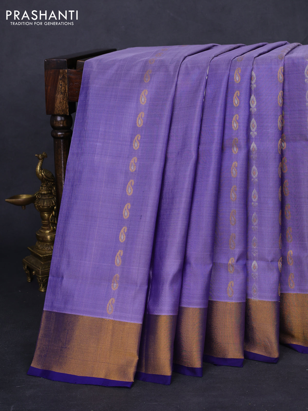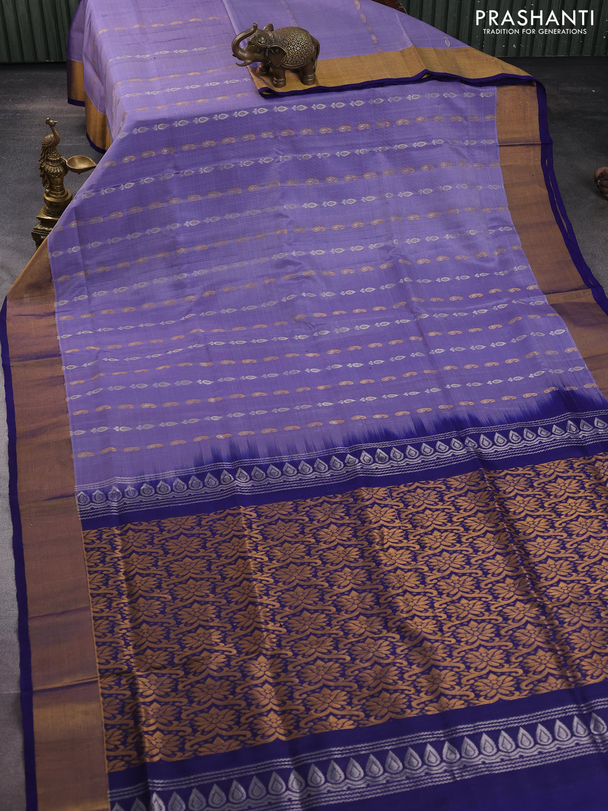 Pure uppada silk saree pastel blue and blue with silver & gold zari woven butta weaves and zari woven border