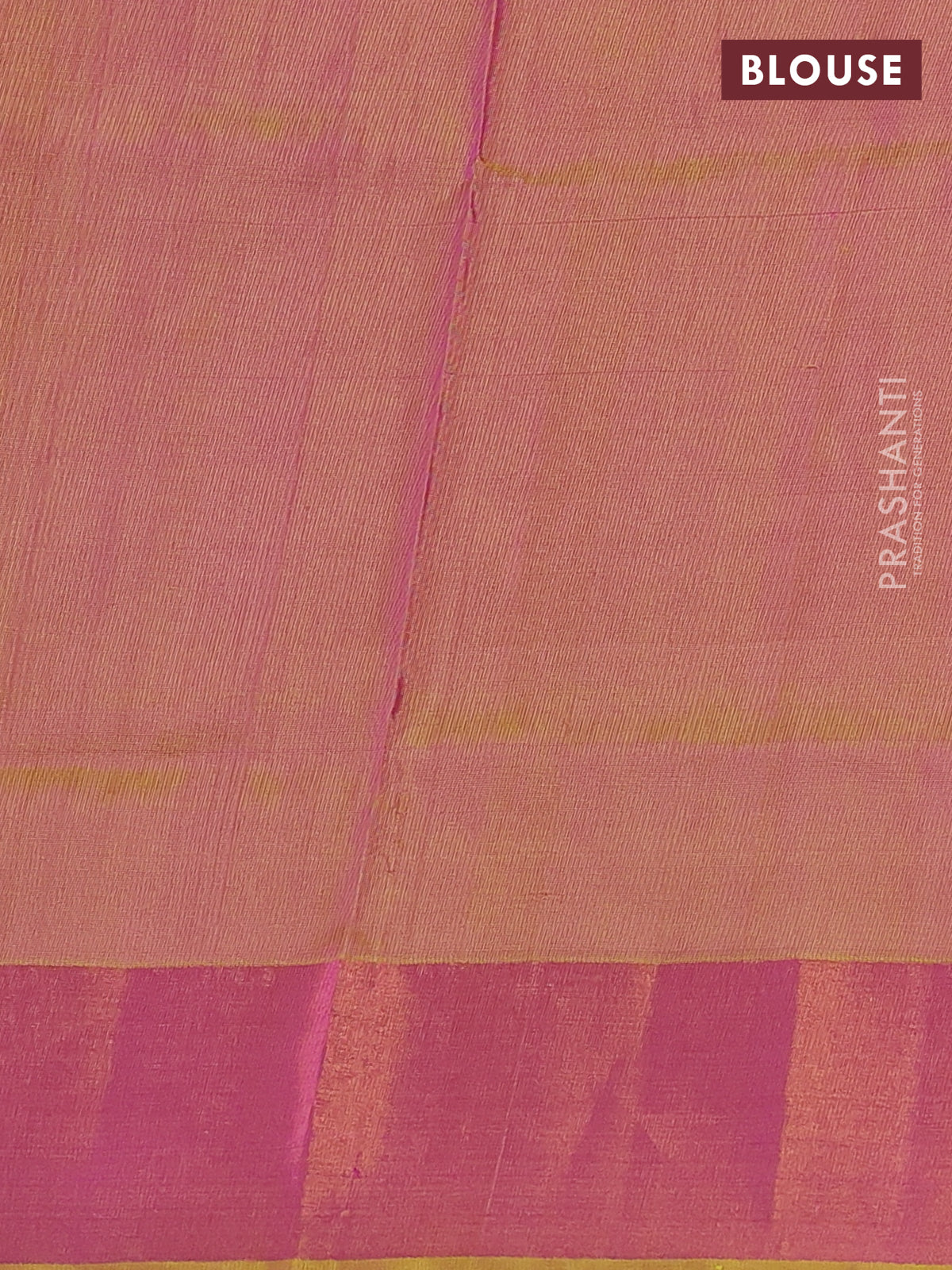 Pure uppada silk saree pink and dual shade of yellow with silver & gold geometric weaves and zari woven border