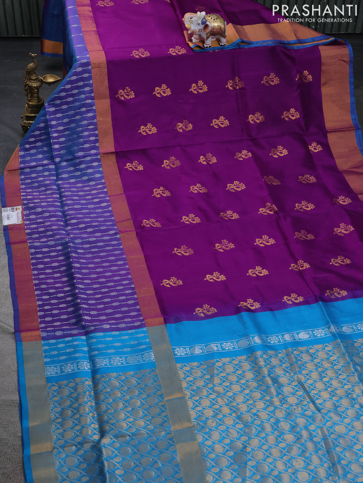 Pure uppada silk saree purple and dual shade of cs blue with zari woven buttas and long zari woven border