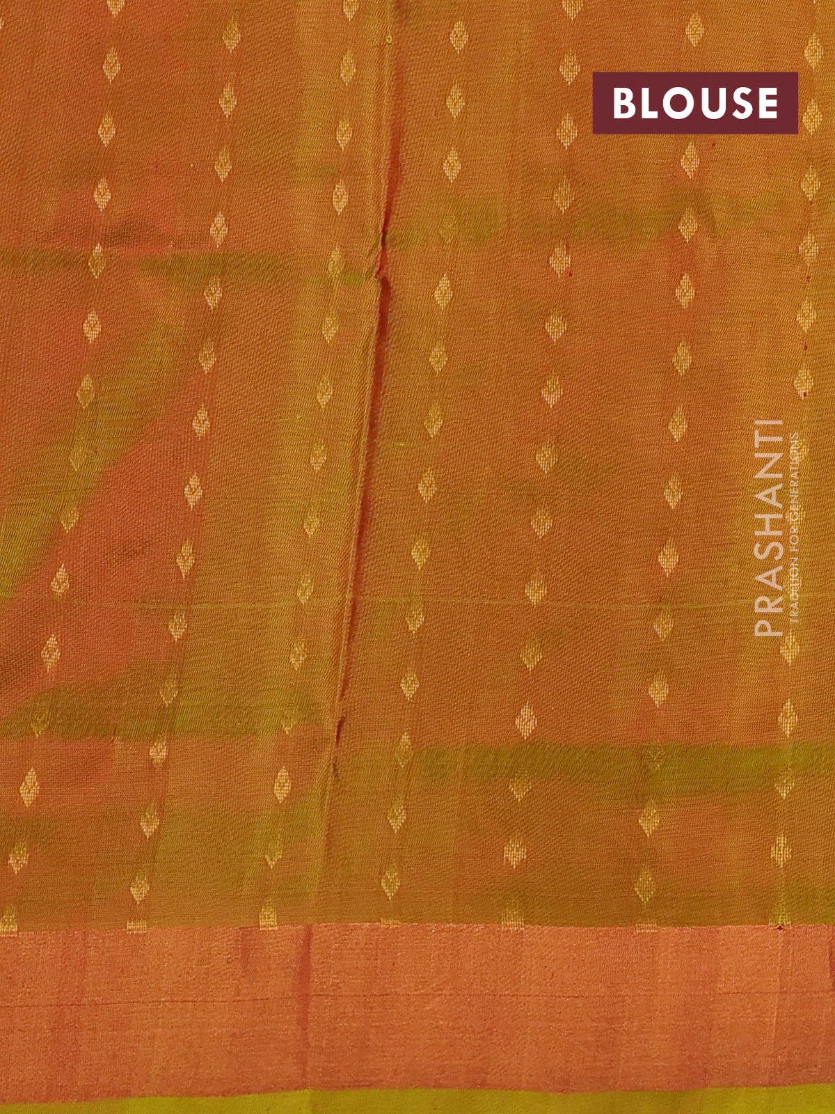 Pure uppada silk saree red and dual shade of green with allover zari woven buttas and zari woven border