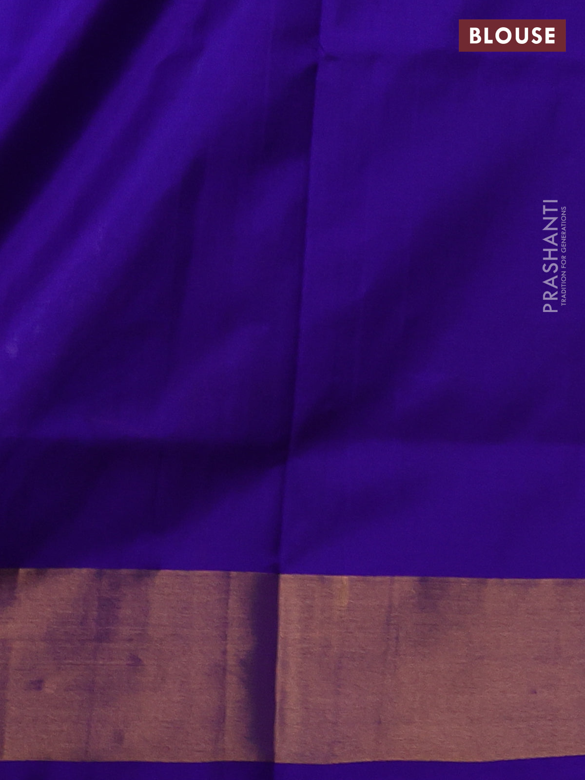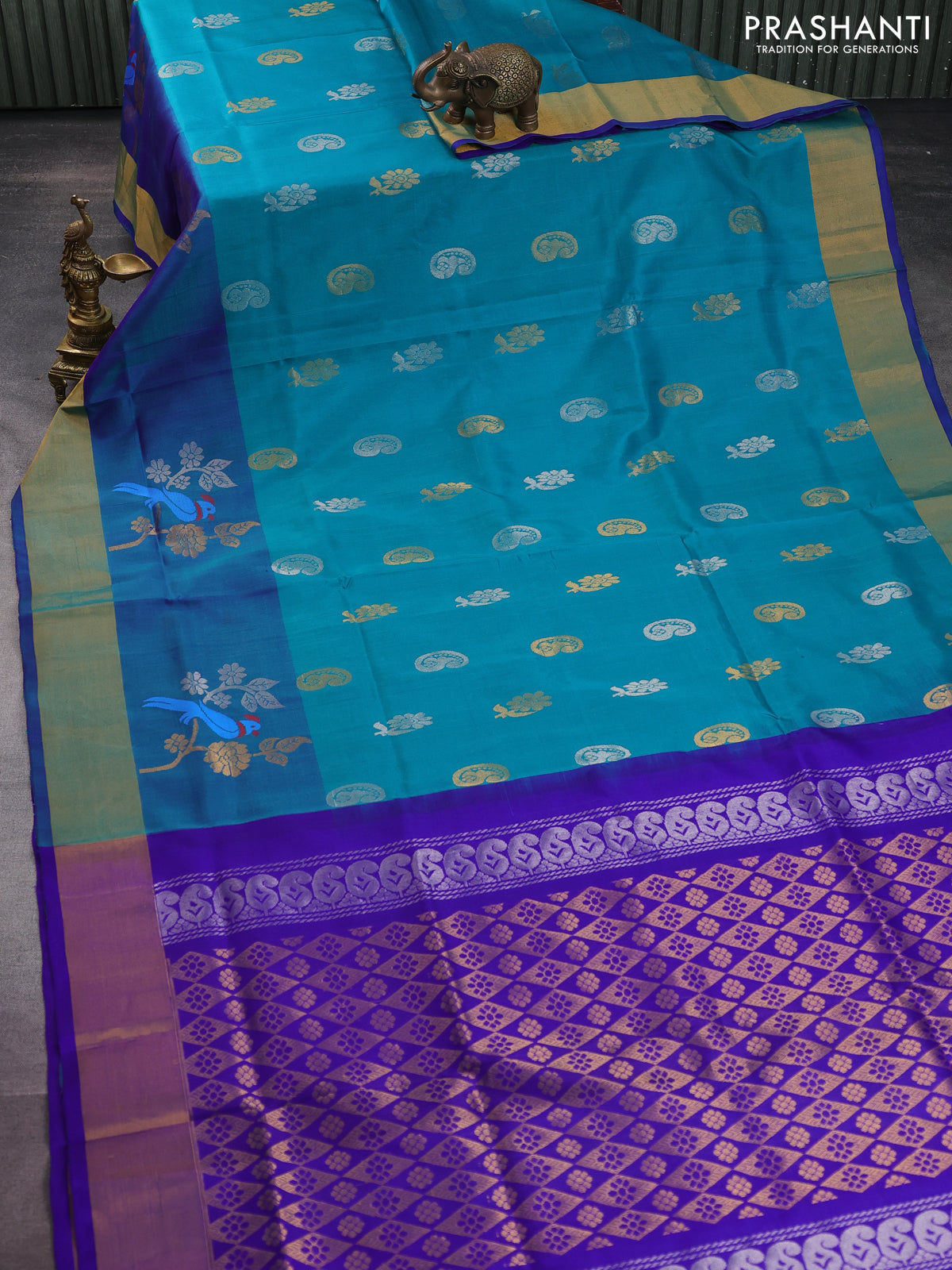 Pure uppada silk saree teal blue and blue with silver & gold zari woven buttas and zari woven border