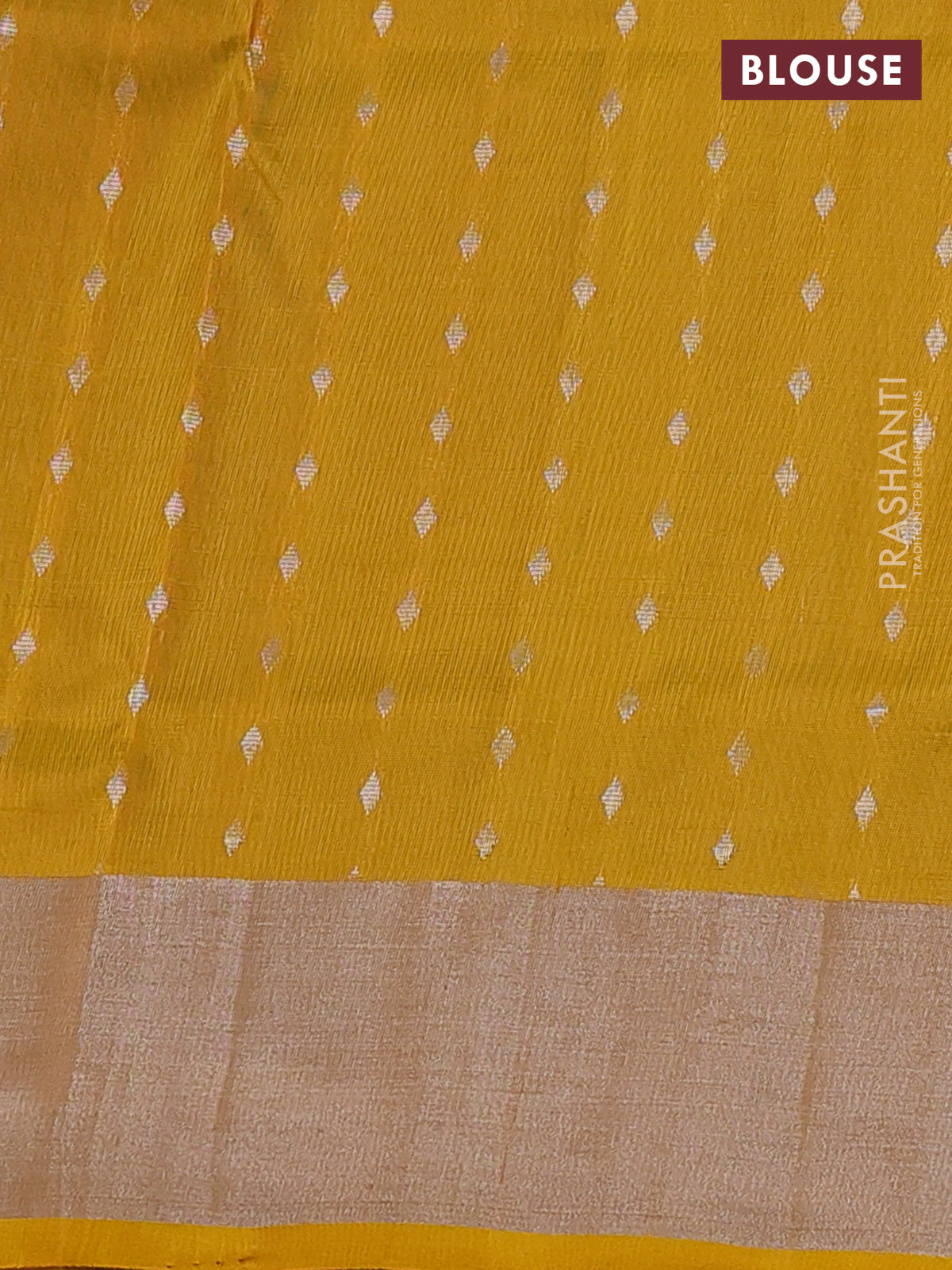Pure uppada silk saree teal blue and yellow with allover silver zari woven floral buttas and silver zari woven border