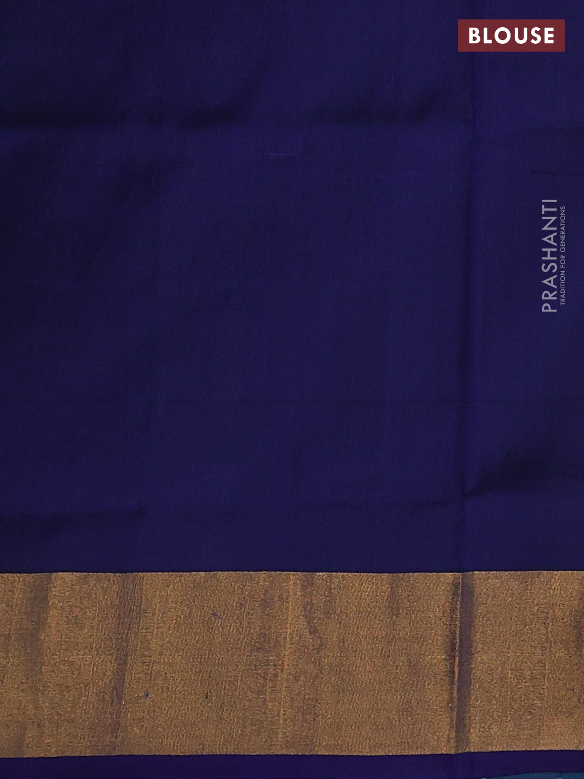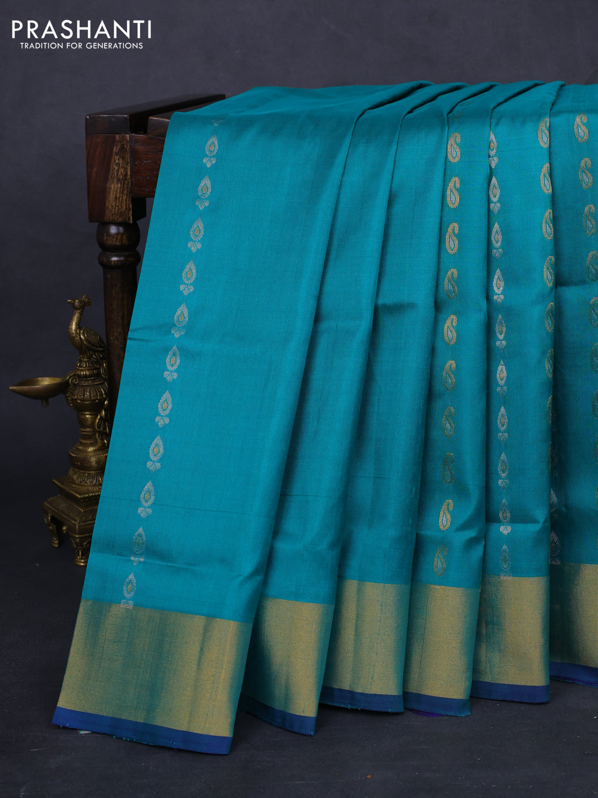 Pure uppada silk saree teal green and blue with silver & gold zari woven butta weaves and zari woven border
