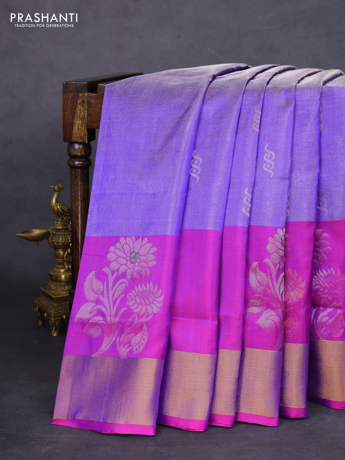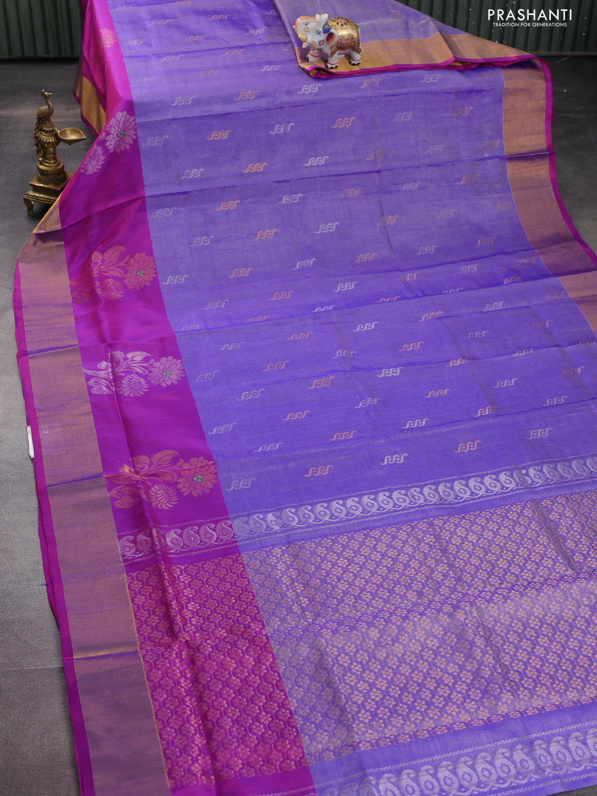 Pure uppada tissue silk saree blue and purple with silver & gold zari woven buttas and zari woven border