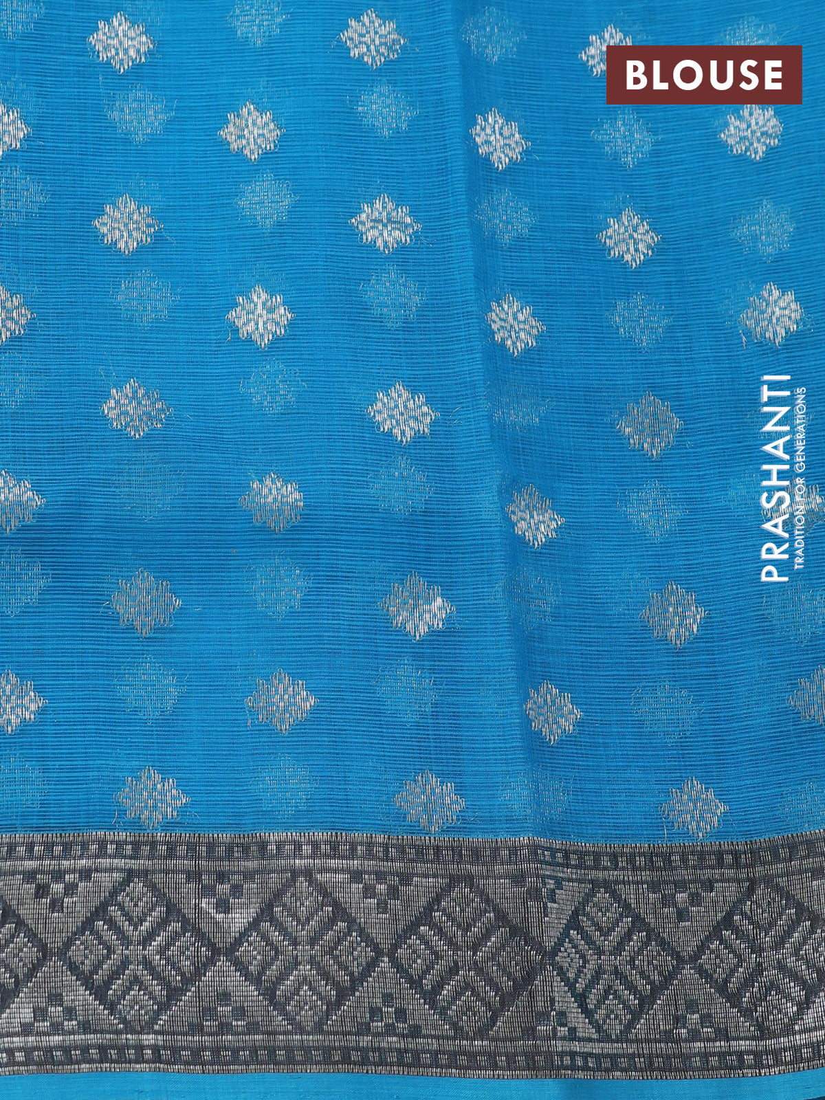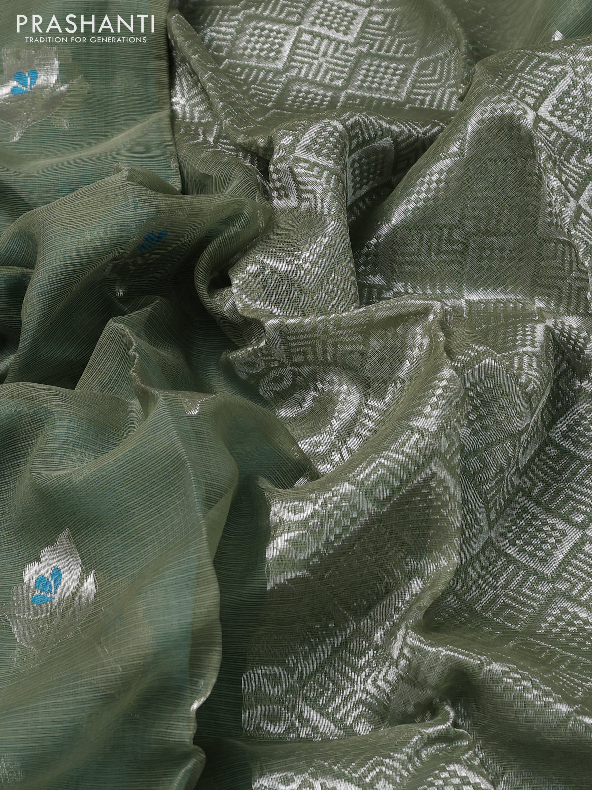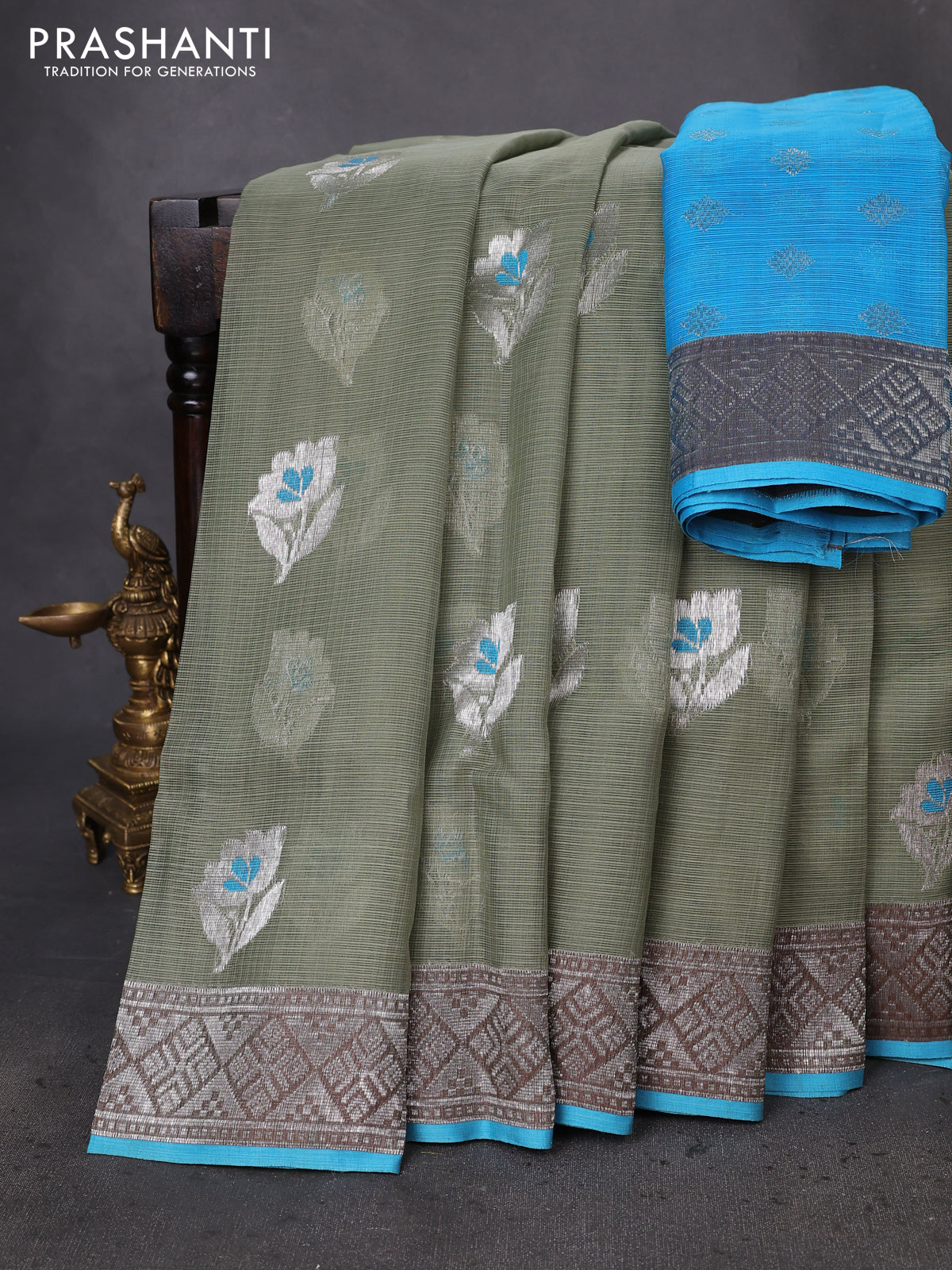 Pure zari kota silk saree pastel green and cs blue with thread & silver zari woven floral buttas and silver zari woven border