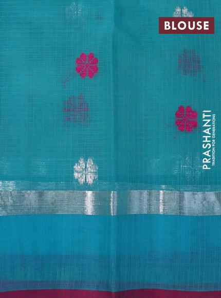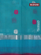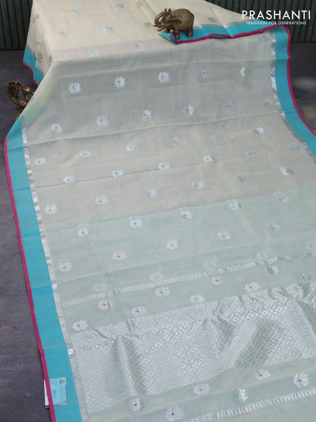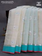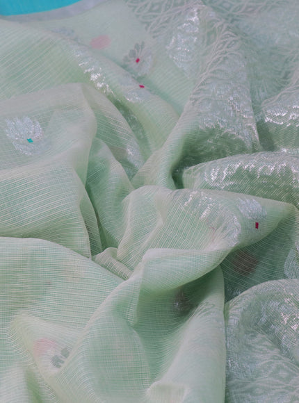Pure zari kota silk saree pastel green and teal blue with silver zari woven buttas and silver zari woven simple border