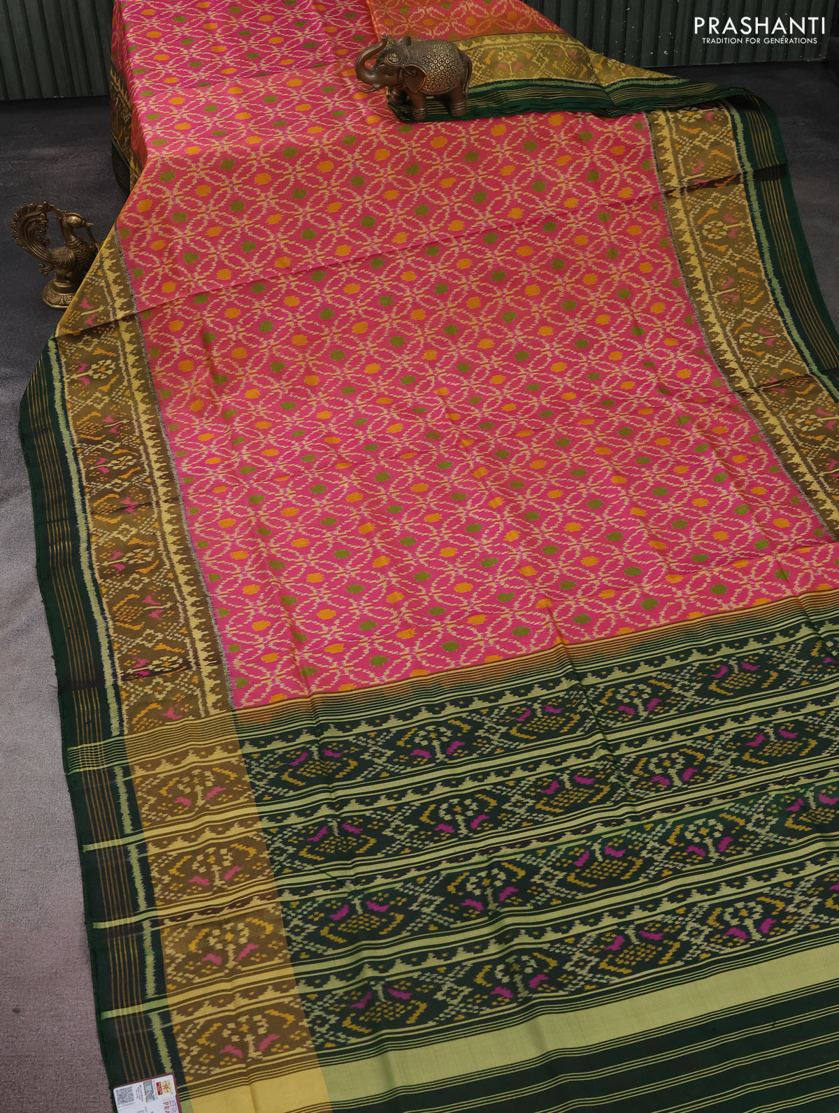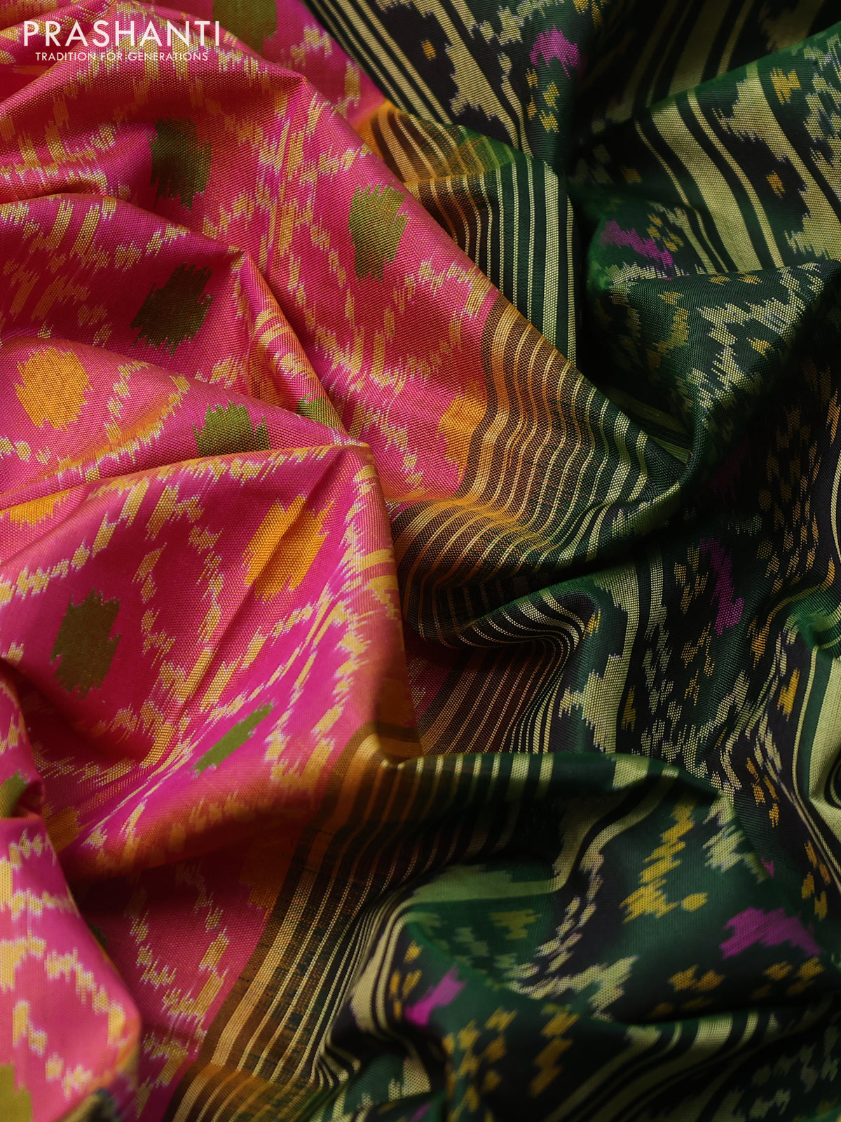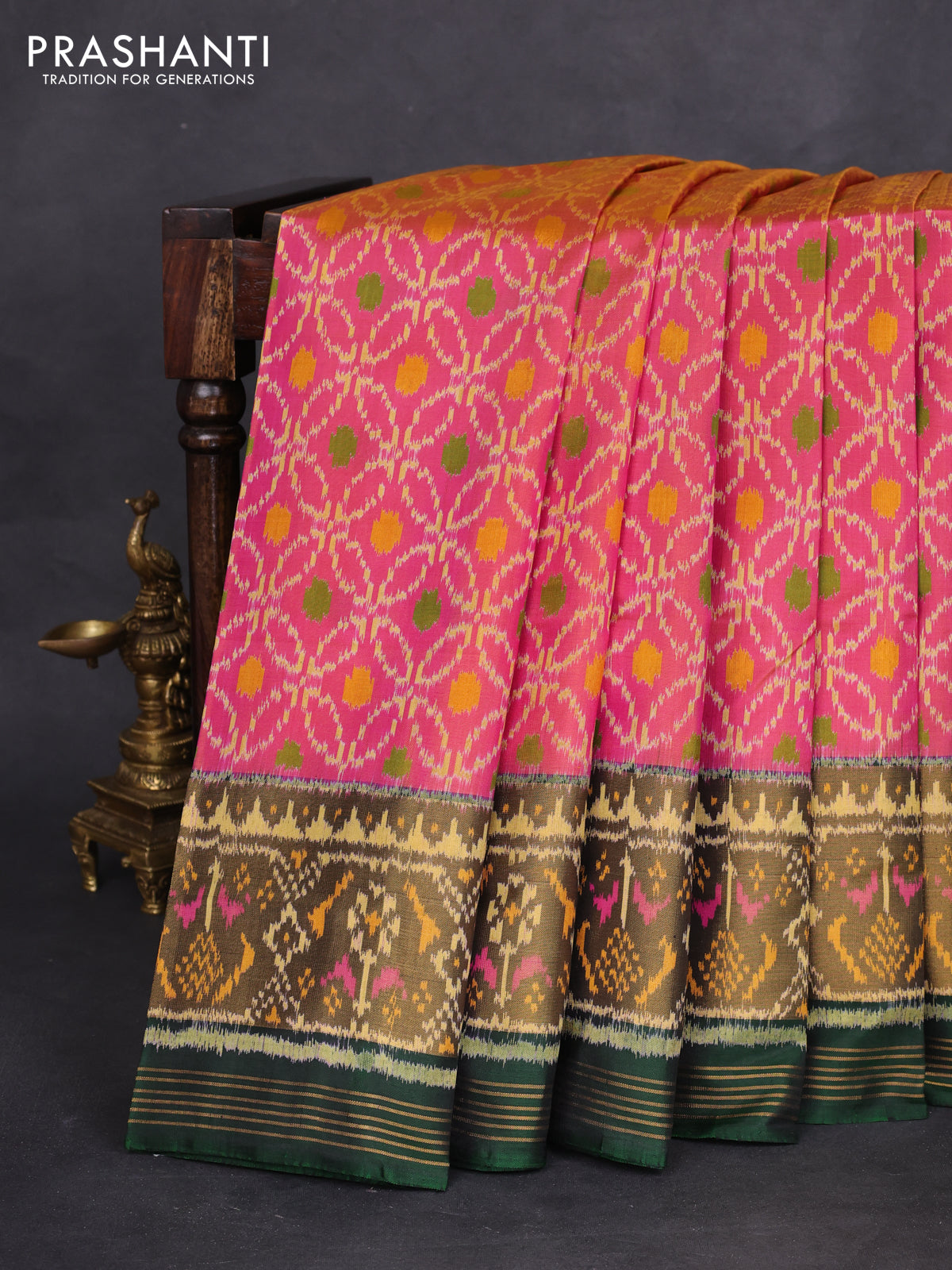 Rajkot patola silk saree dual shade of pink and green with allover ikat weaves and long zari woven border