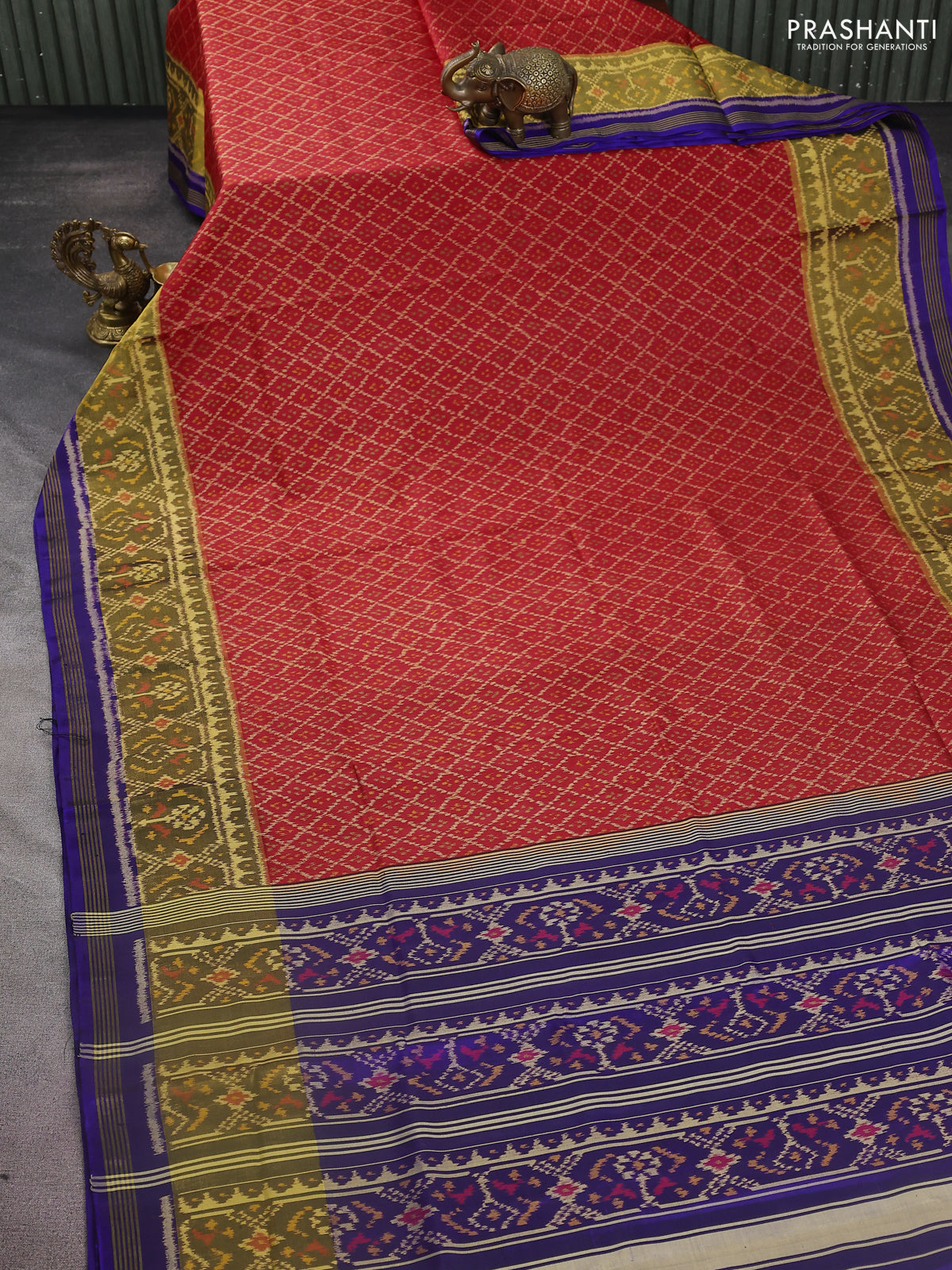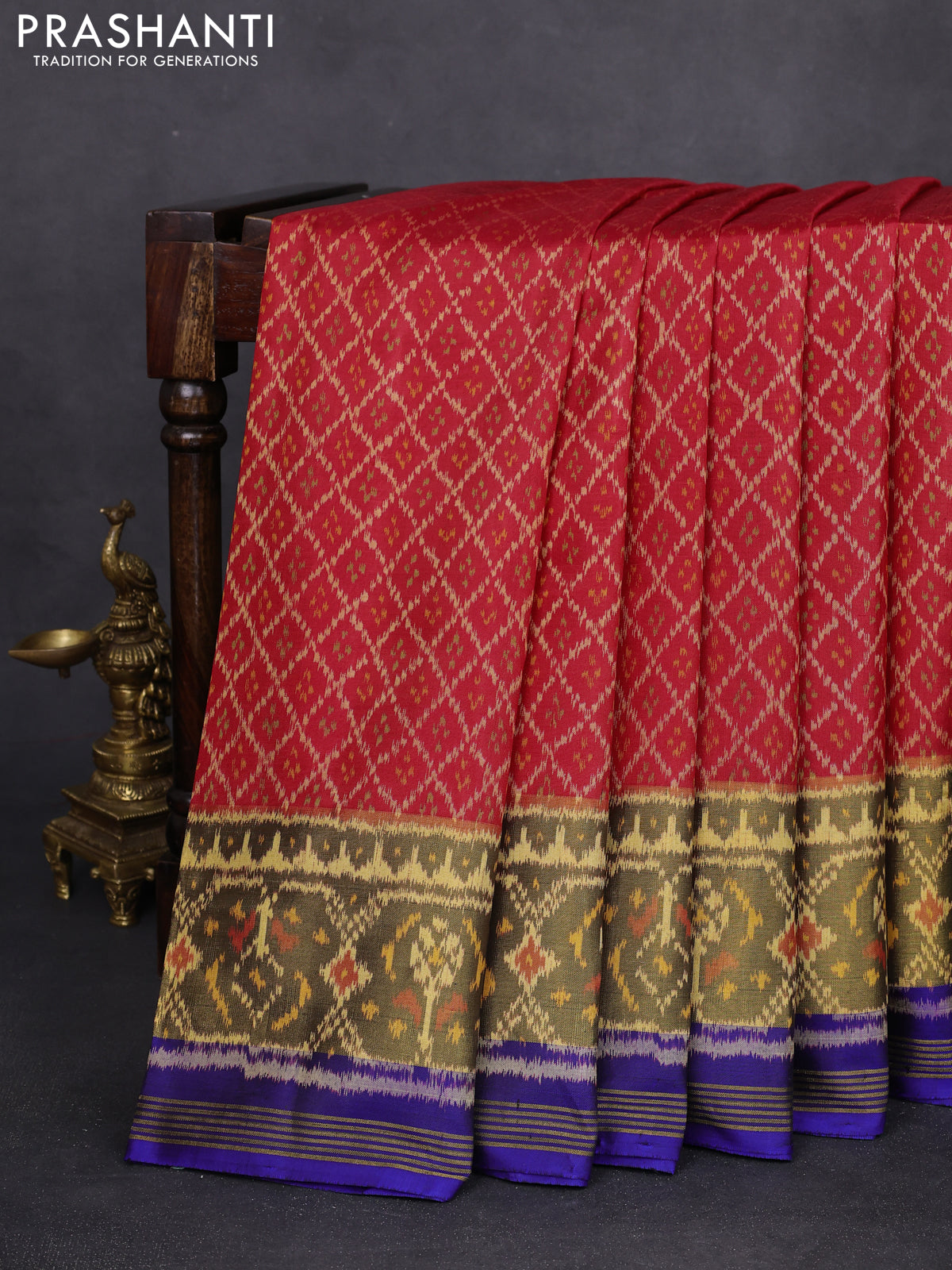 Rajkot patola silk saree red and blue with allover ikat weaves and ikat woven zari border