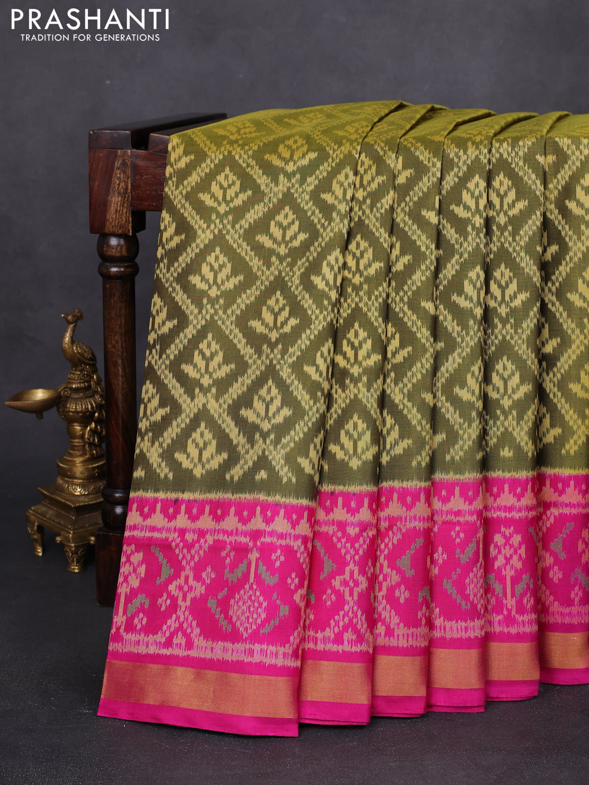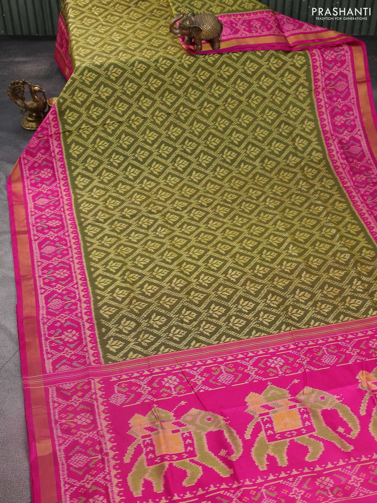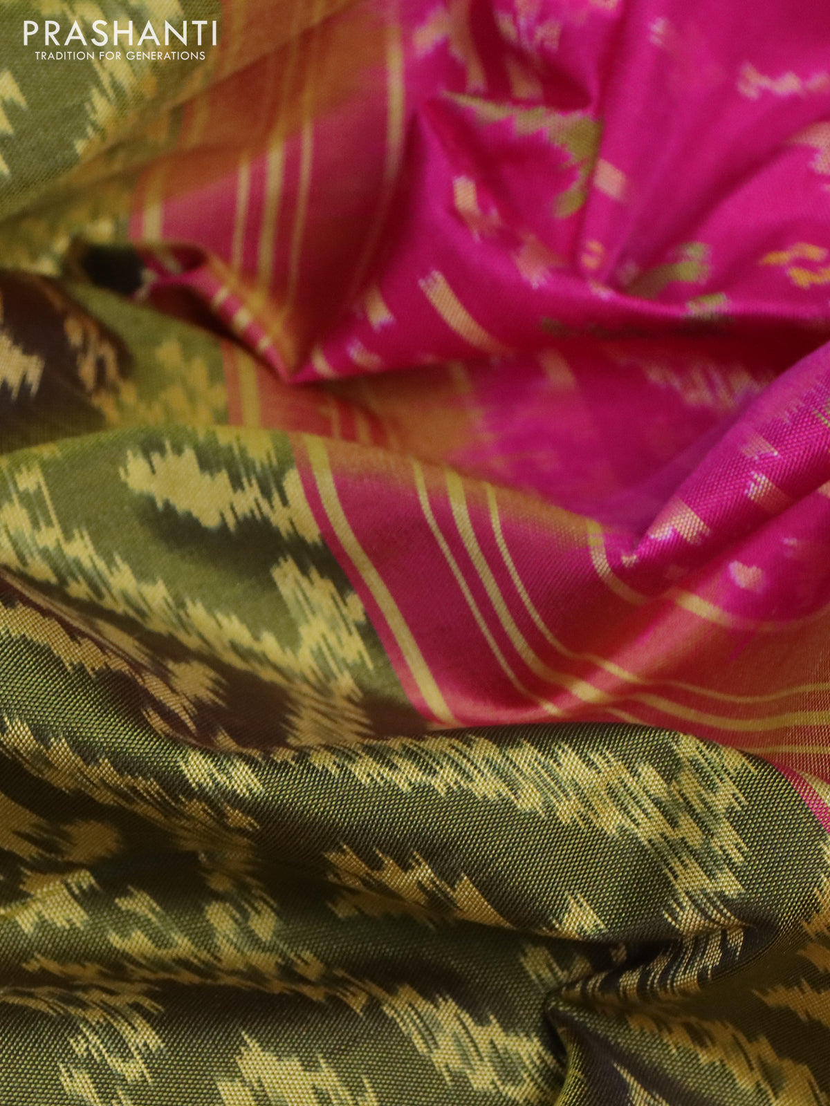 Rajkot patola silk saree sap green and pink with allover ikat weaves and ikat woven zari border
