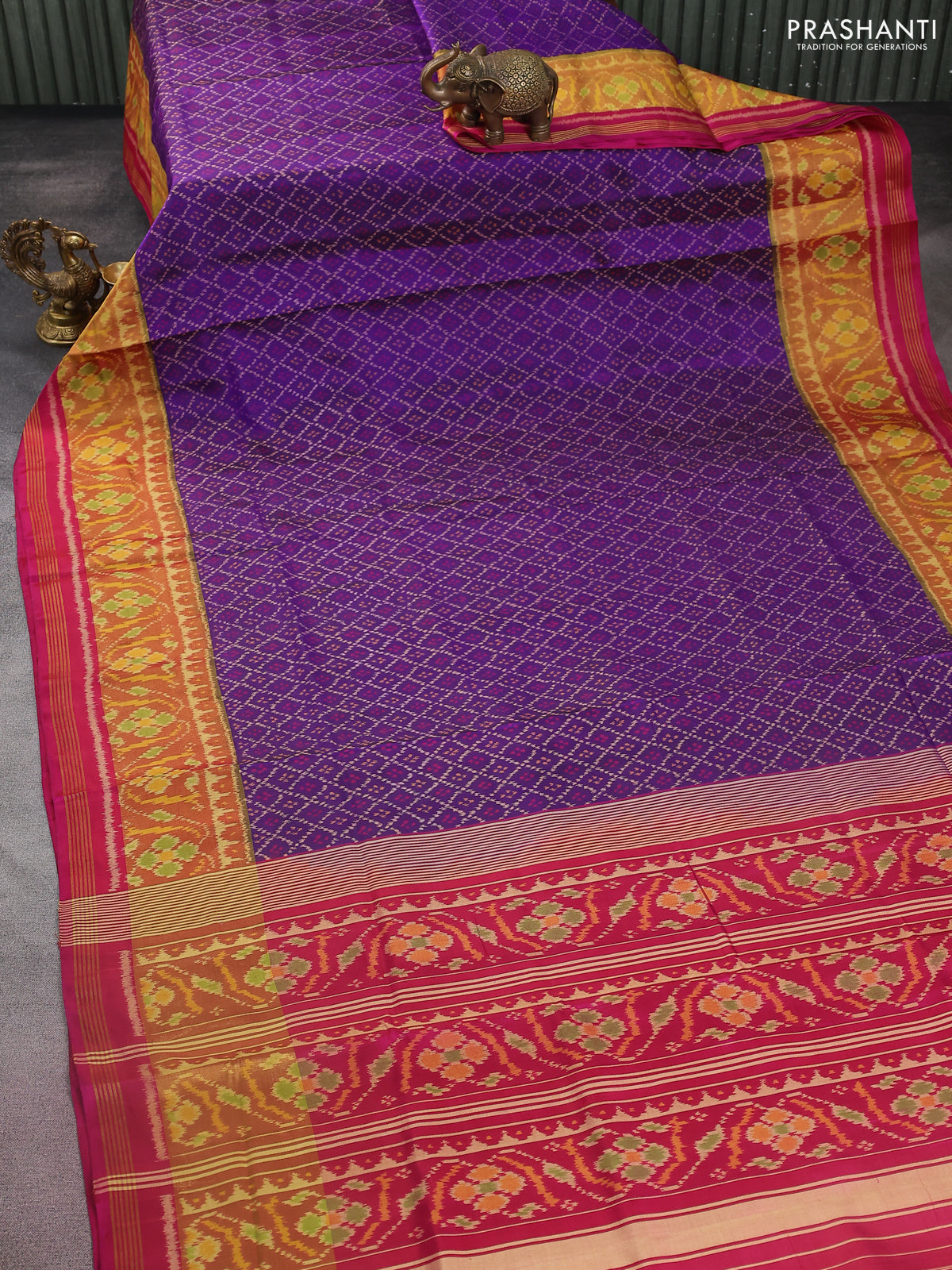Rajkot patola silk saree violet and magenta pink with allover ikat weaves and ikat woven zari border
