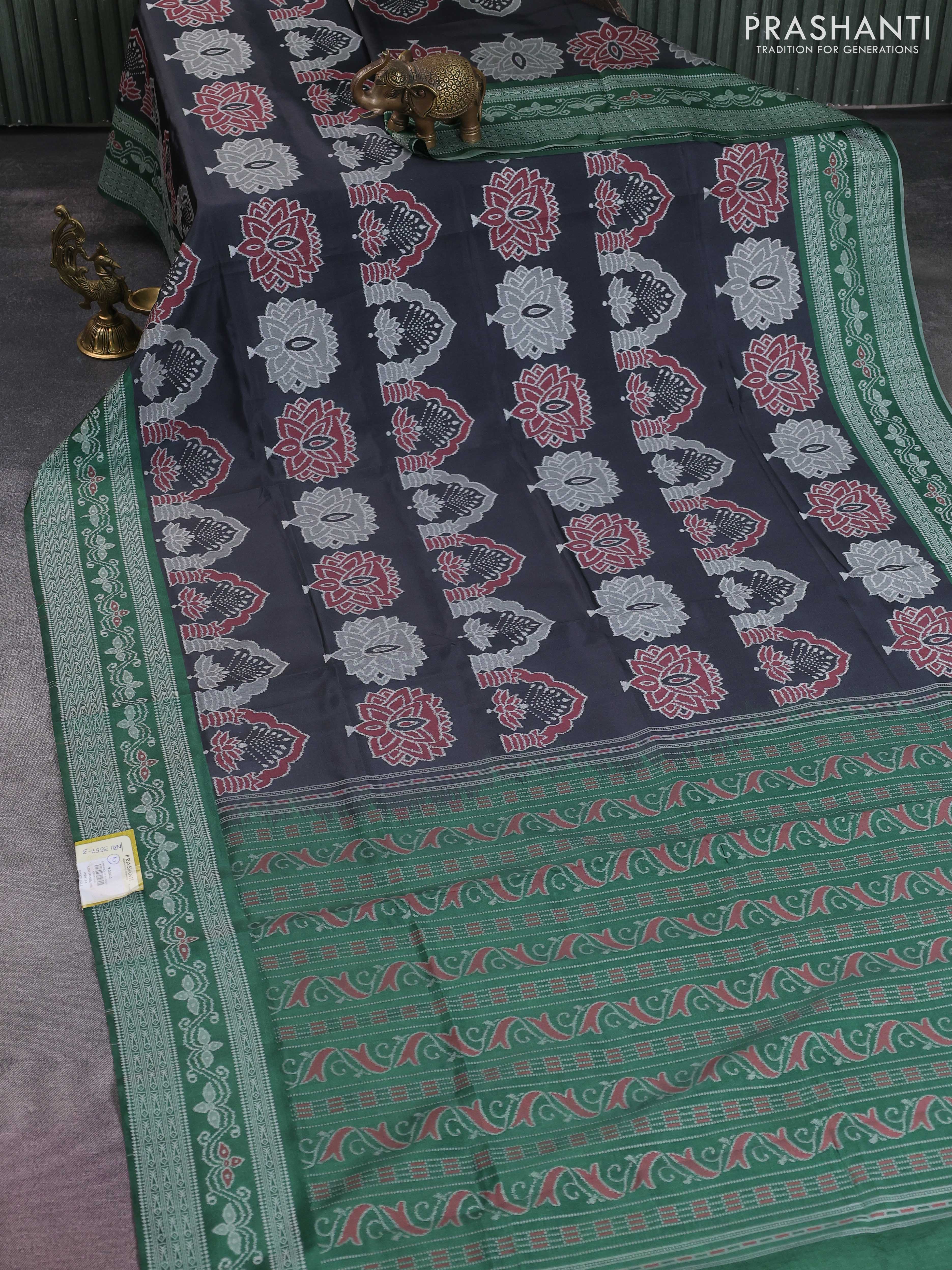 Sambalpuri semi silk saree black and green with allover ikat weaves and thread woven border