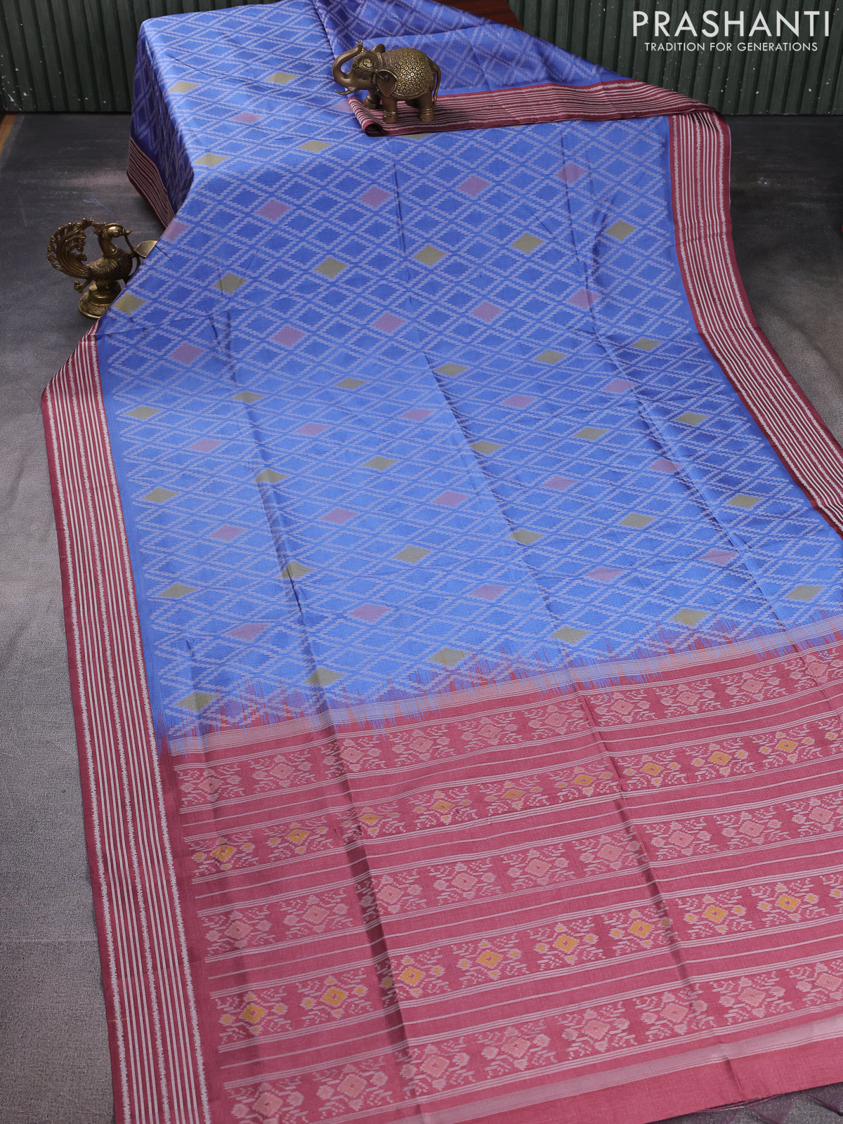 Sambalpuri semi silk saree blue and maroon shade with allover ikat weaves and thread woven border