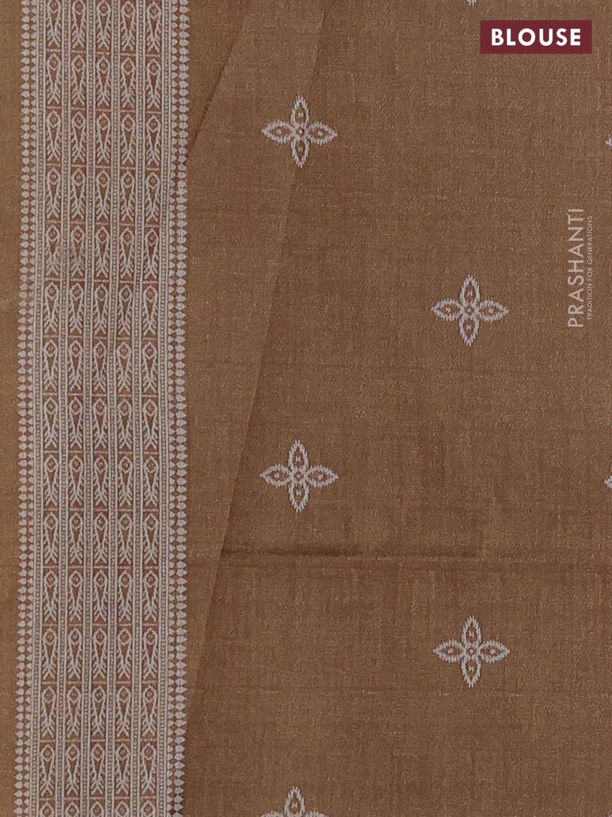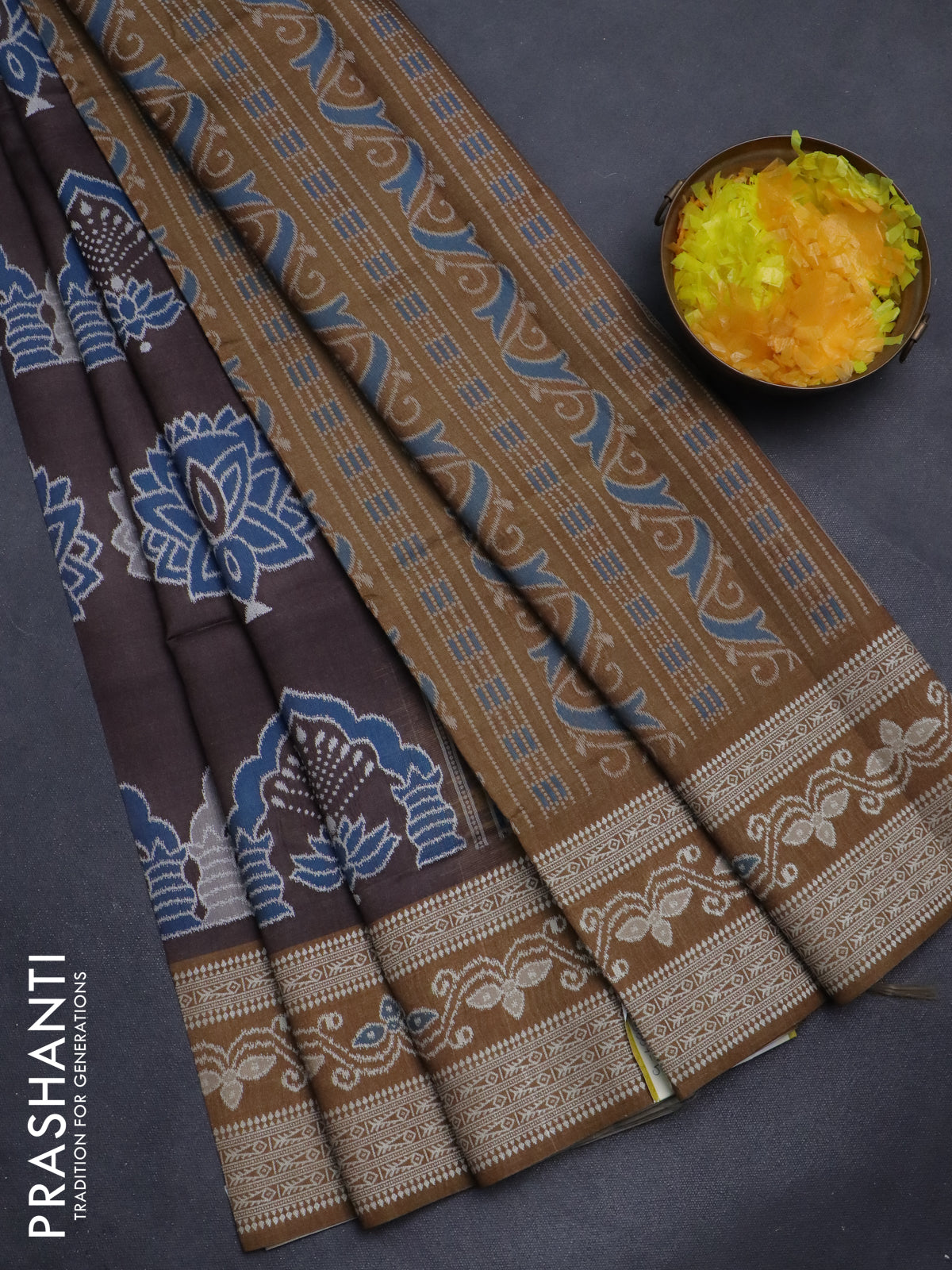 Sambalpuri semi silk saree coffee brown and dark mehendi green with allover ikat weaves and thread woven border
