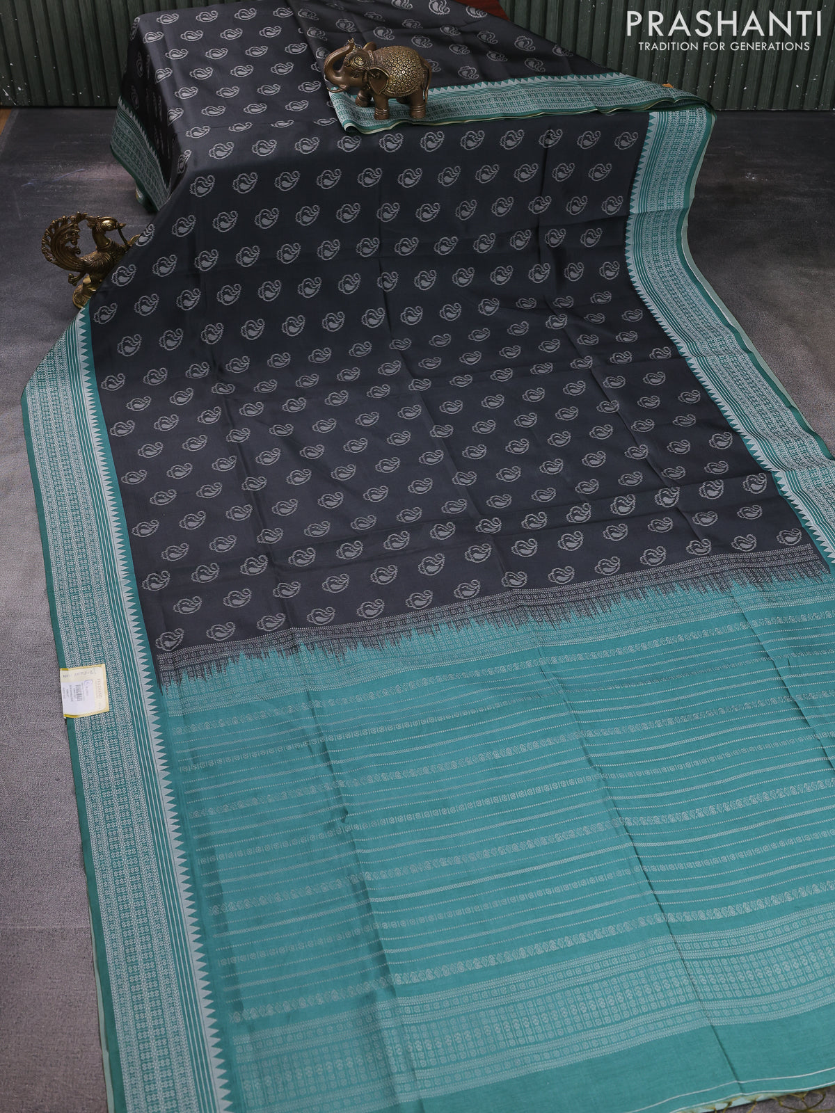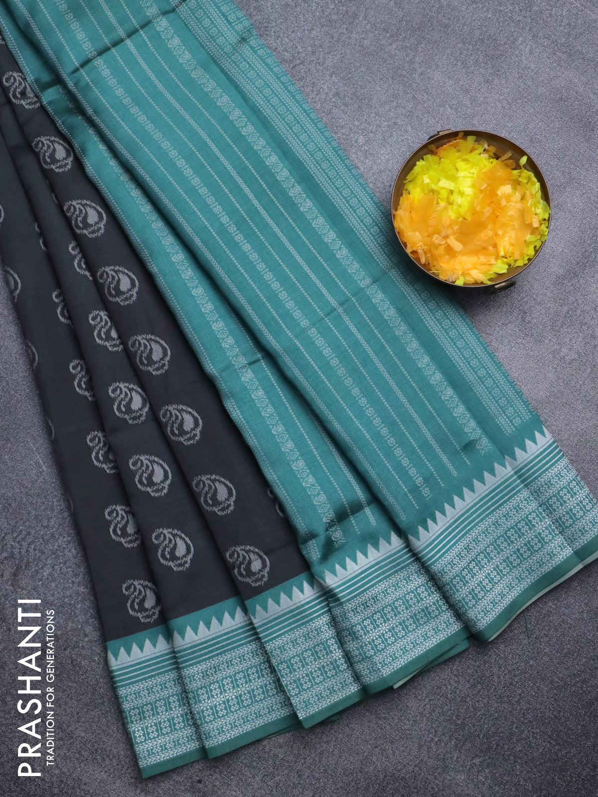 Sambalpuri semi silk saree elephant grey and green shade with paisley butta weaves and thread woven border