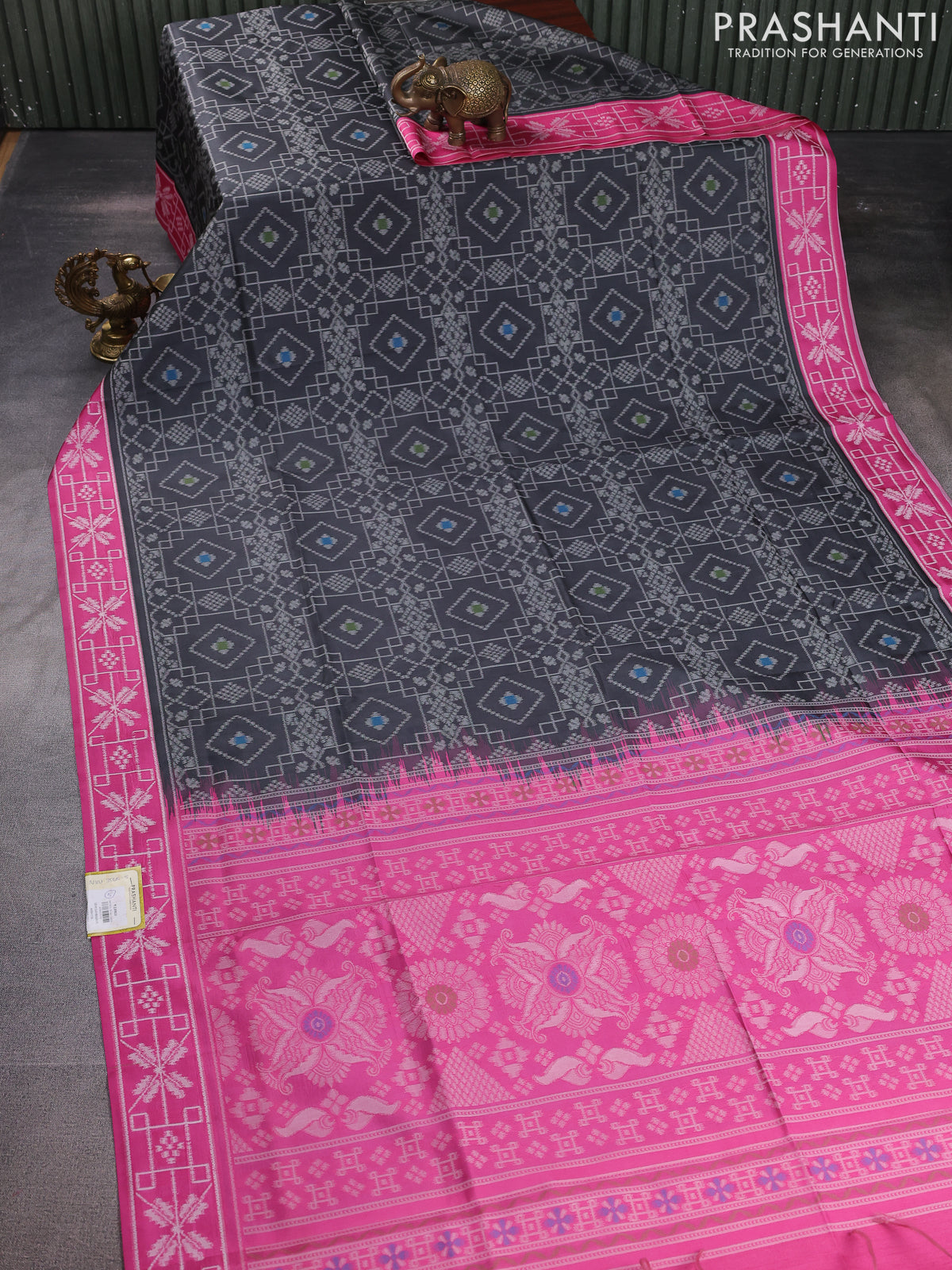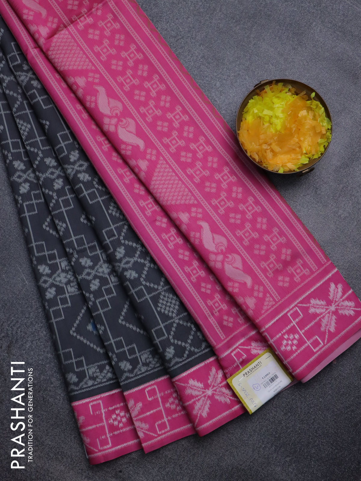 Sambalpuri semi silk saree elephant grey and pink with allover ikat weaves and thread woven border