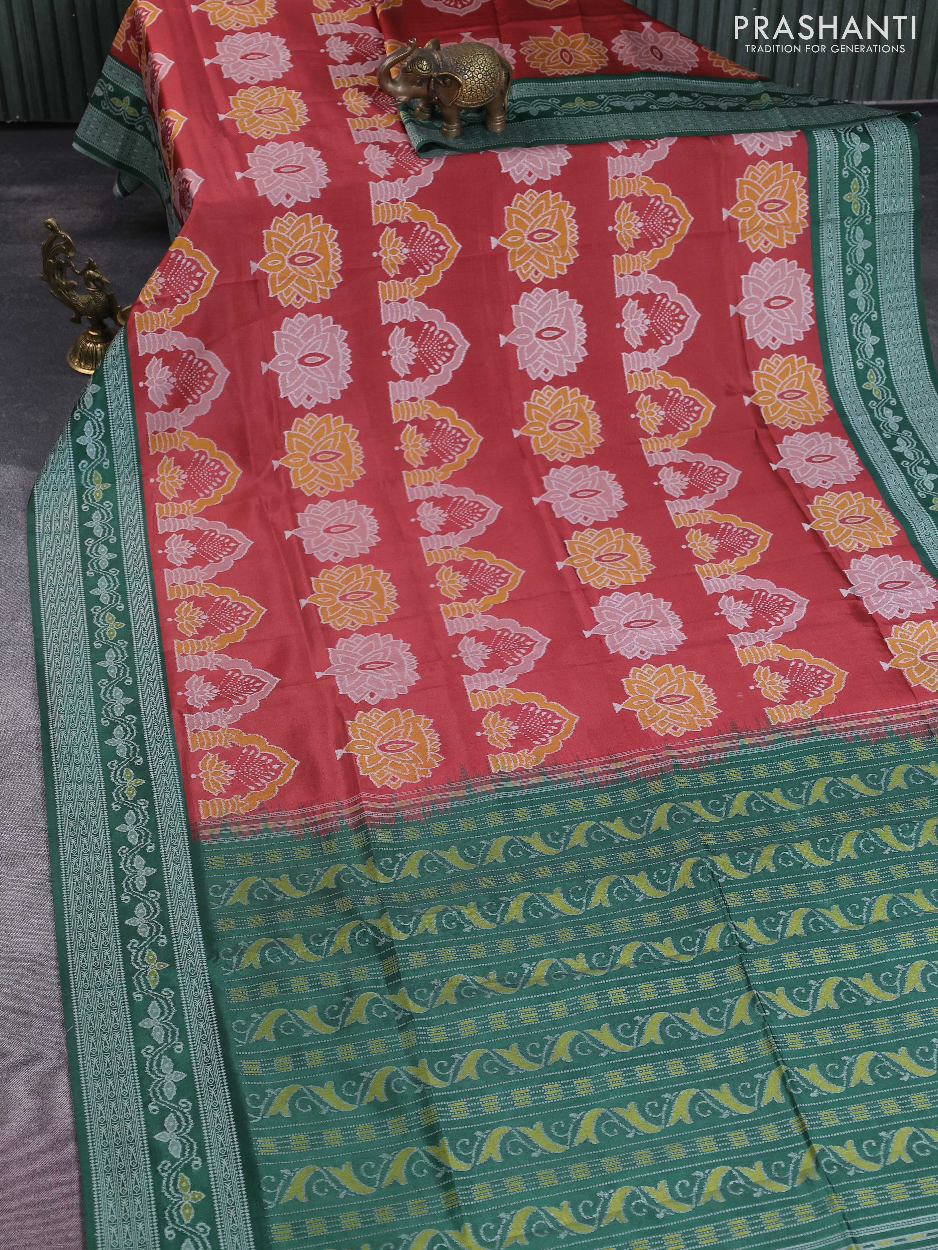 Sambalpuri semi silk saree maroon and green with allover ikat weaves and thread woven border