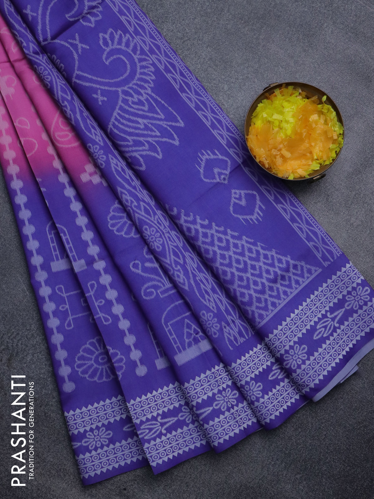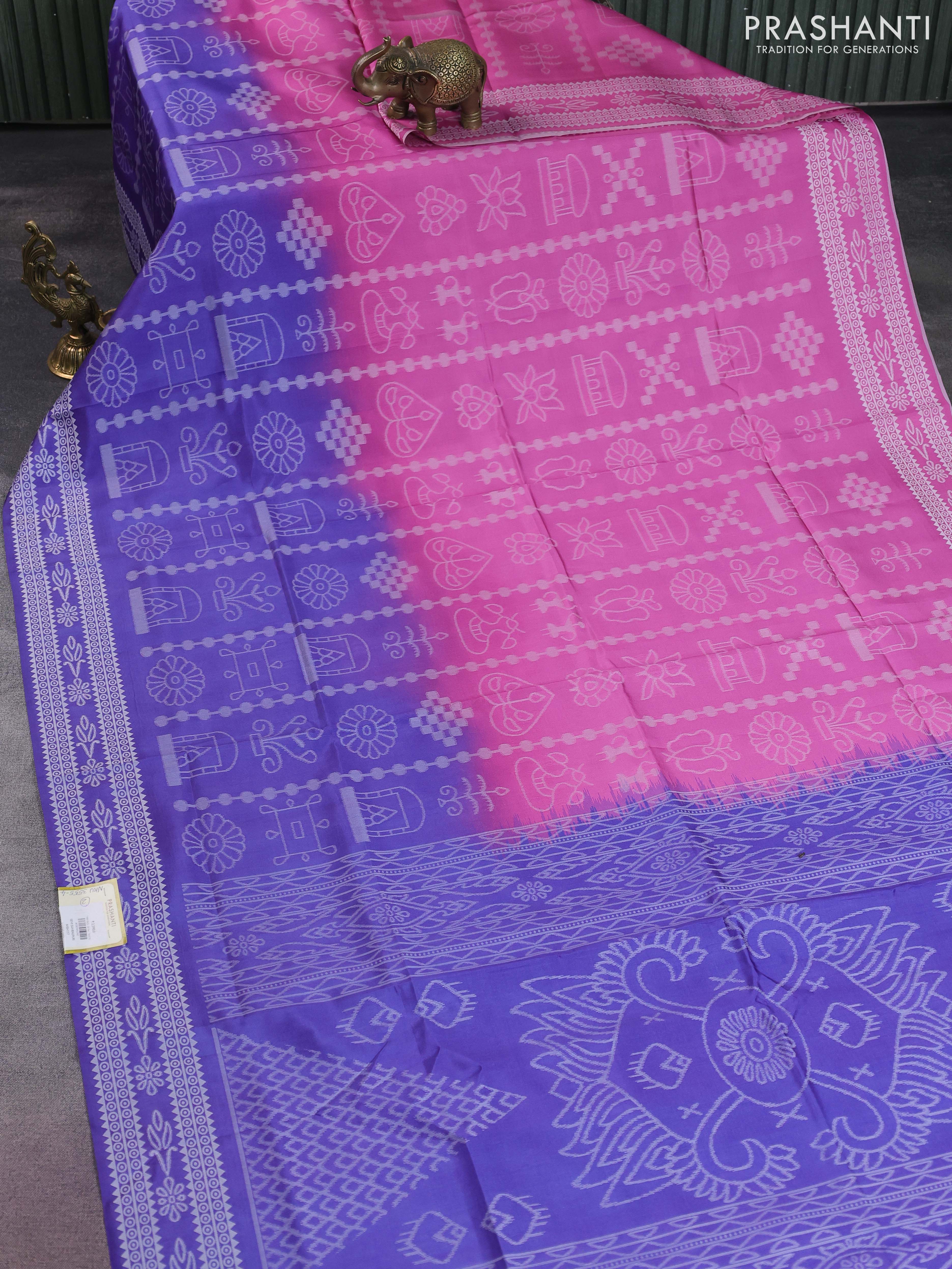 Sambalpuri semi silk saree pink and violet with allover ikat weaves and thread woven border