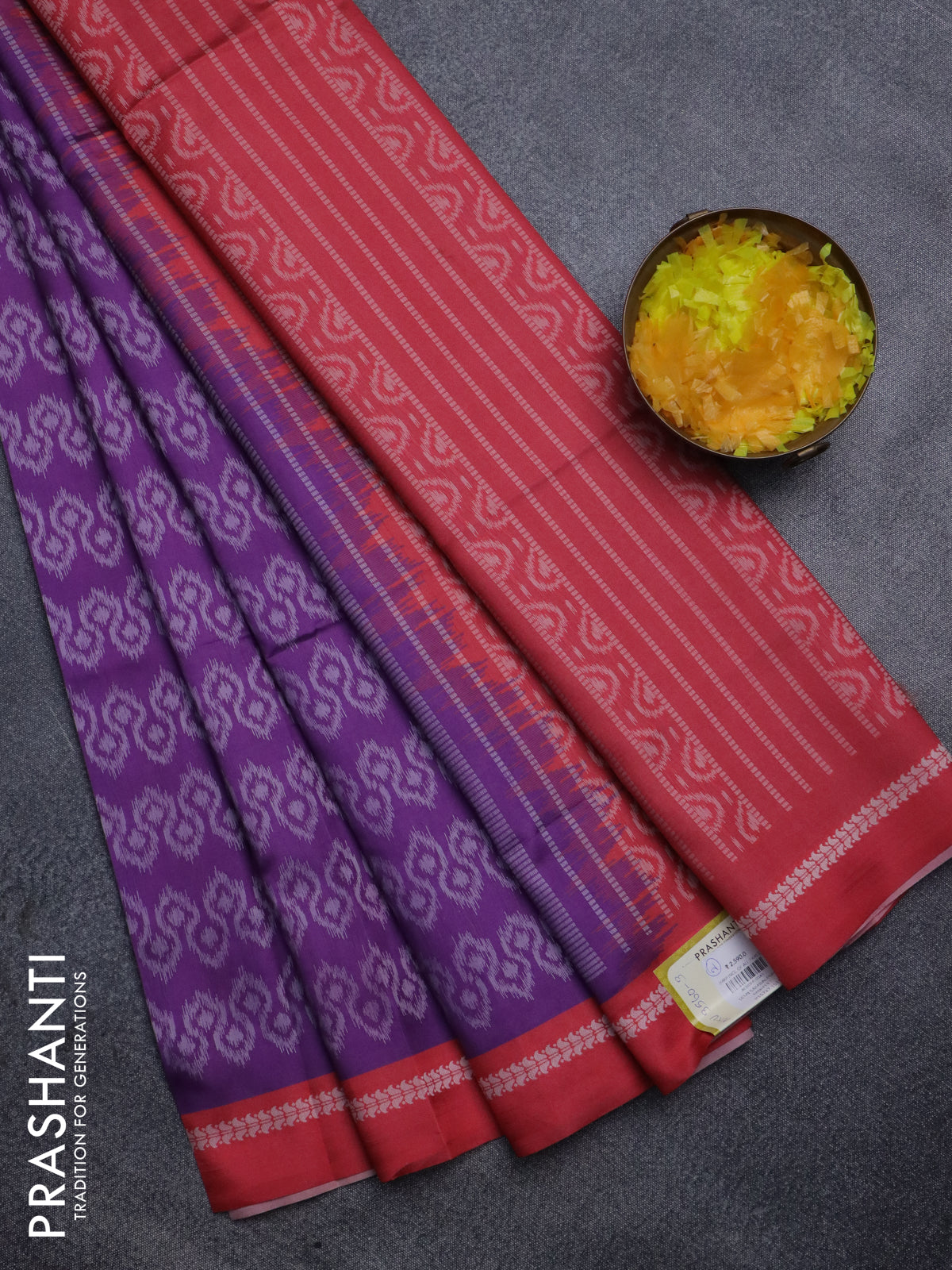 Sambalpuri semi silk saree purple and red with allover ikat weaves and thread woven border