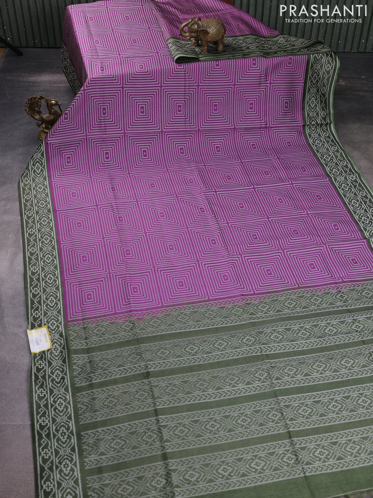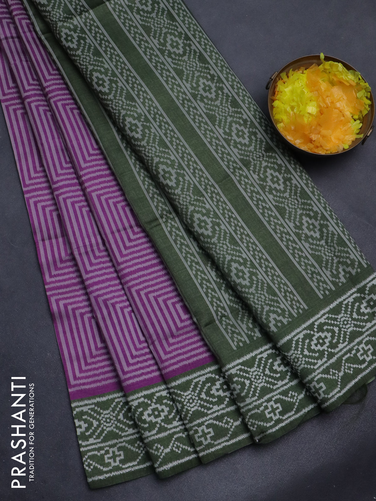 Sambalpuri semi silk saree purple and sap green with allover geometric ikat weaves and thread woven border