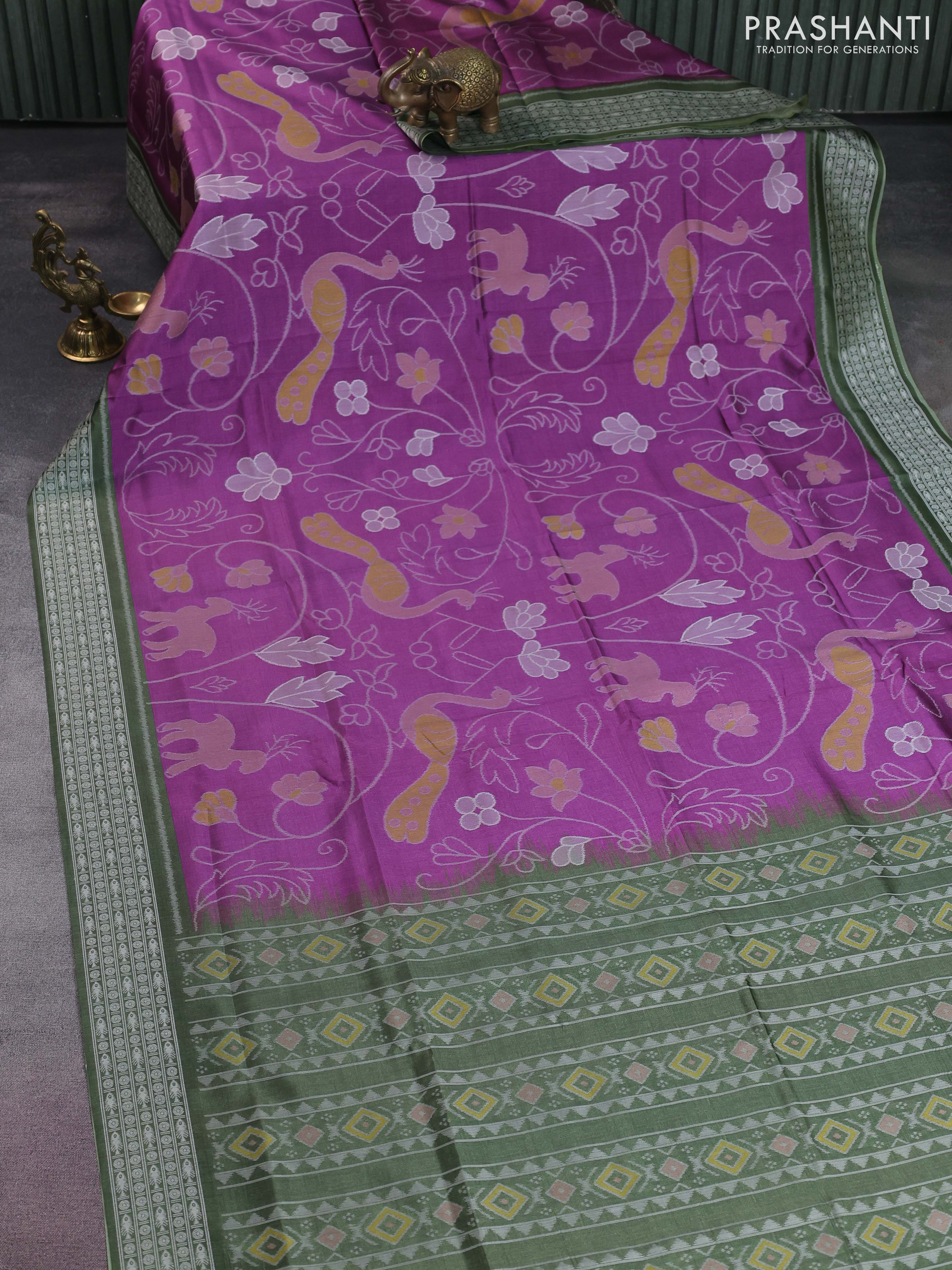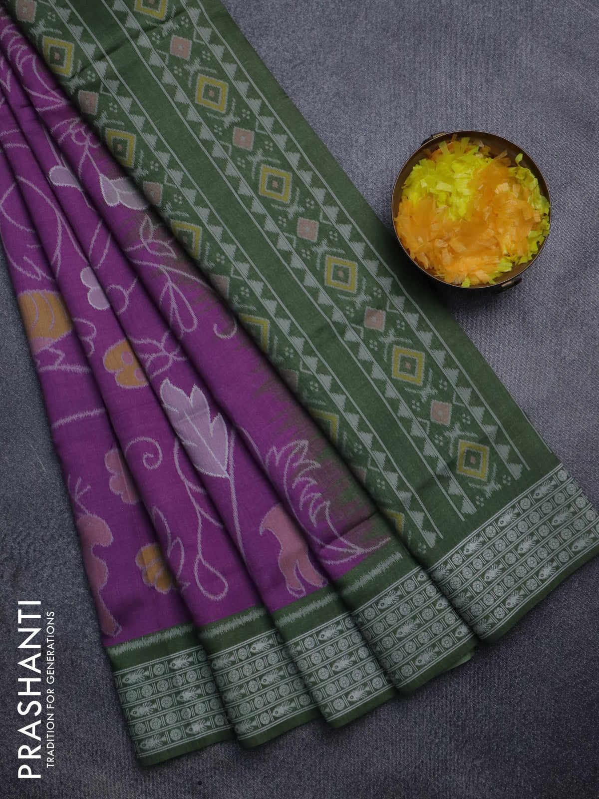 Sambalpuri semi silk saree purple and sap green with allover ikat weaves and thread woven border