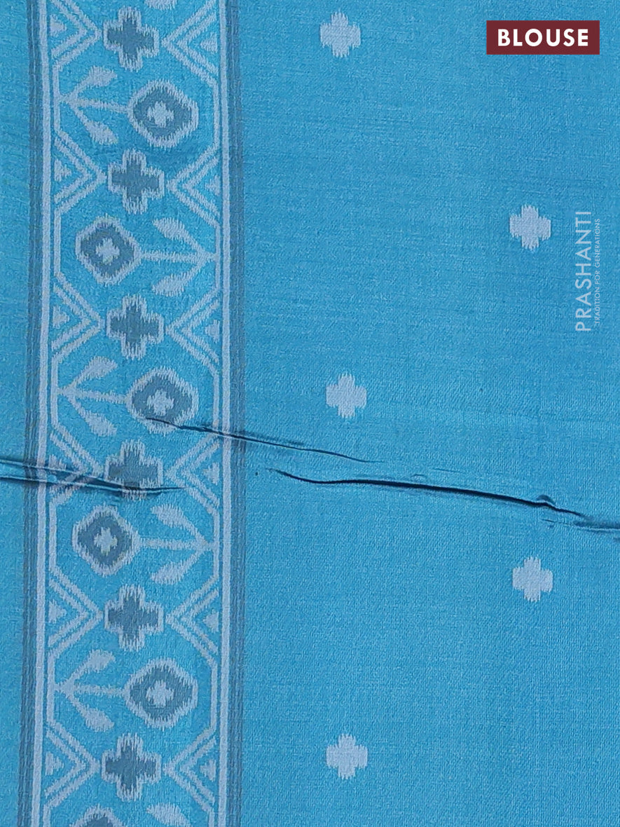 Sambalpuri semi silk saree red and pastel blue with allover ikat butta weaves and thread woven border