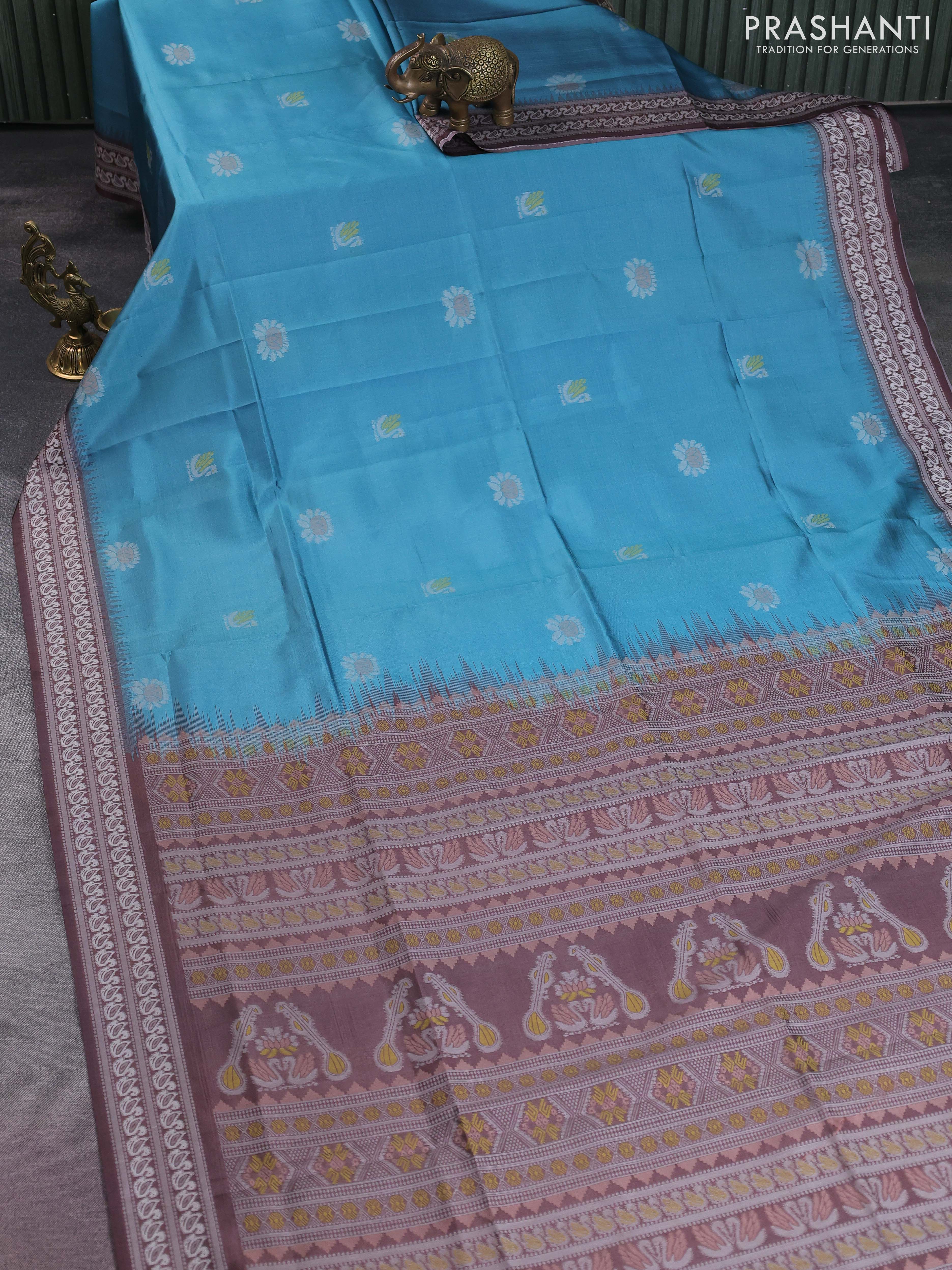 Sambalpuri semi silk saree teal blue and brown with allover ikat butta weaves and thread woven border