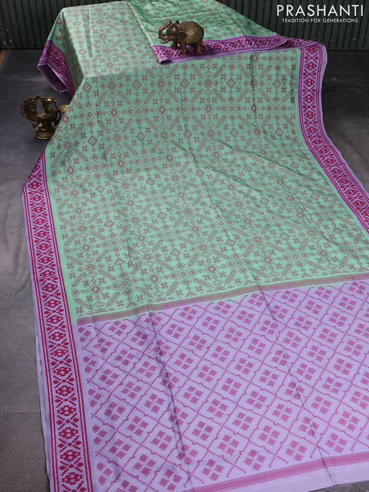Sambalpuri semi silk saree teal green and lavender shade with allover ikat weaves and thread woven border