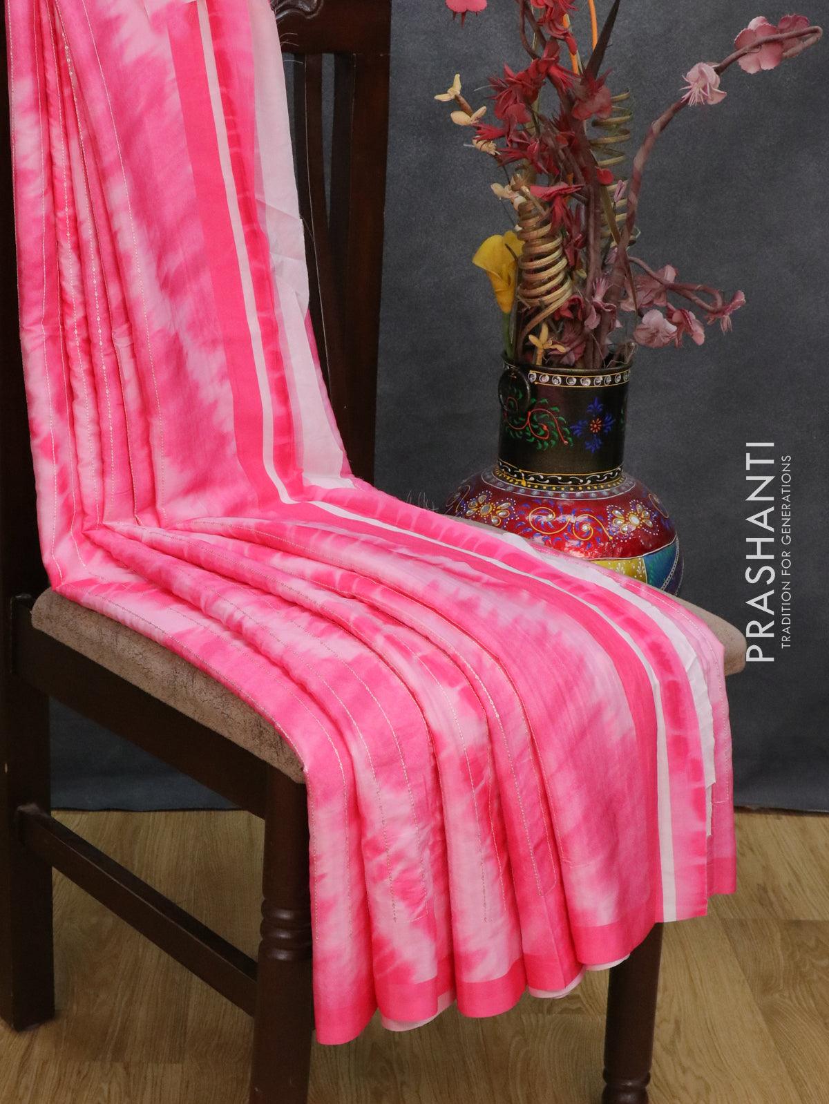 Satin crepe saree candy pink with tie & dye prints and sequence work