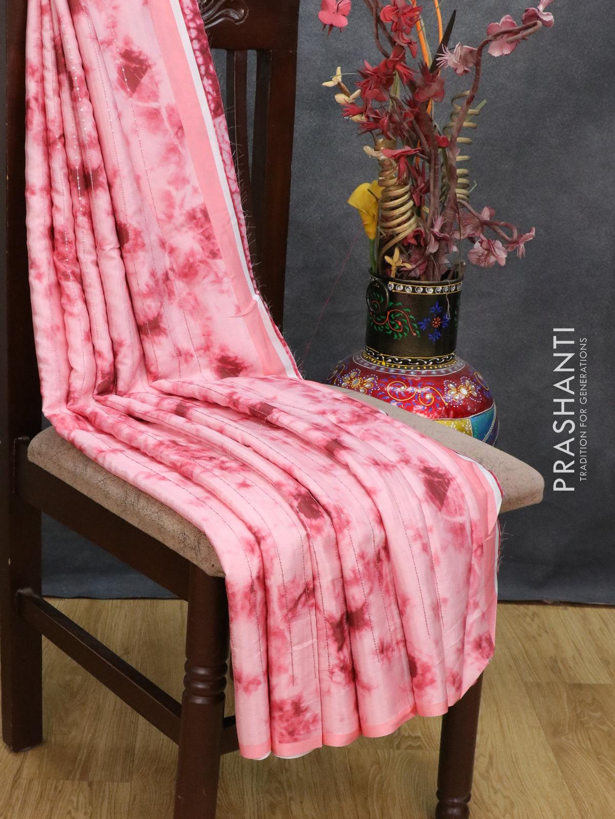 Satin crepe saree peach pink with tie & dye prints and sequence work