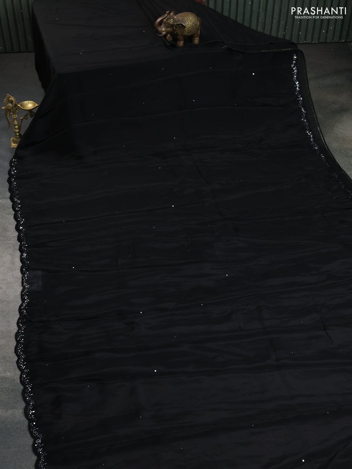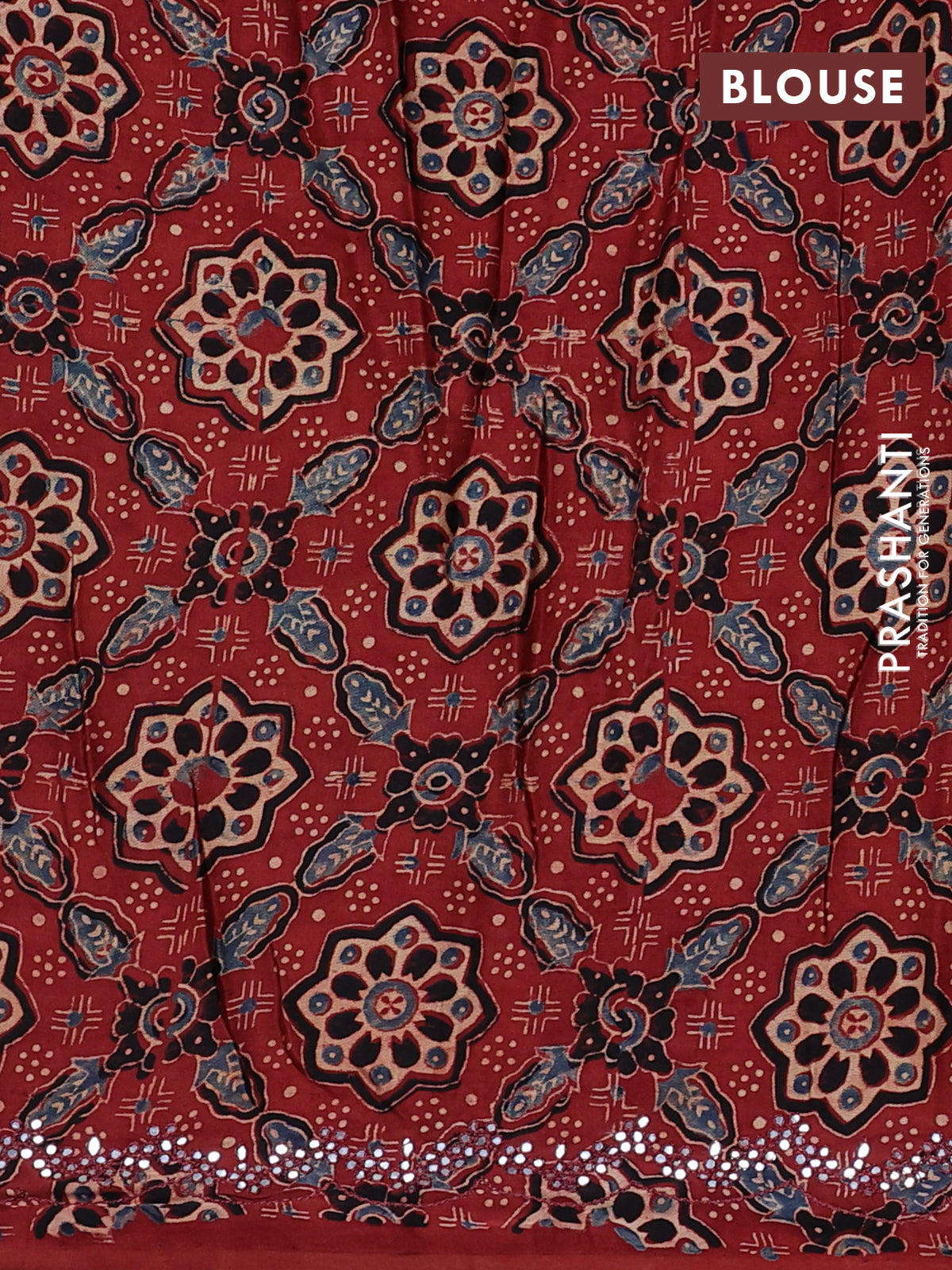 Satin crepe silk saree black and maroon with mirror work and ajrakh printed blouse