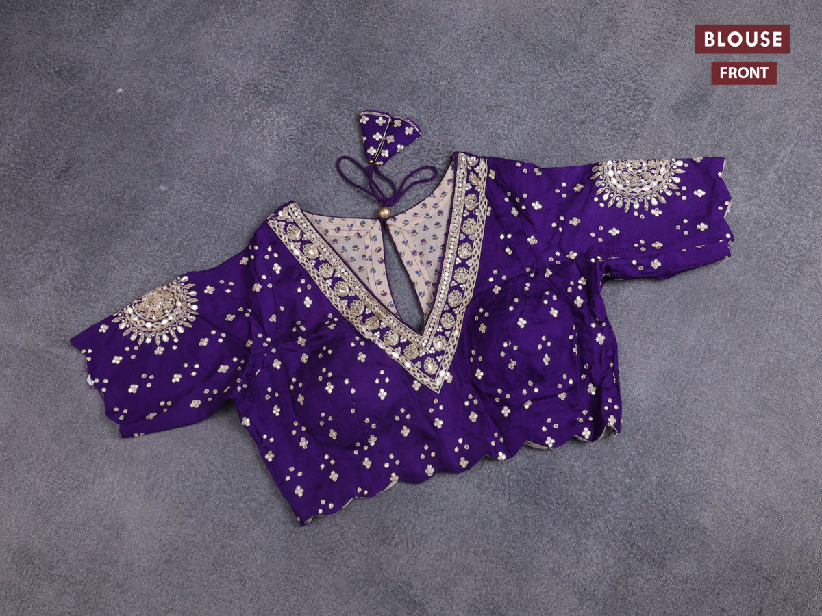 Satin crepe silk saree violet with plain body and zari butta border & rich zari pallu