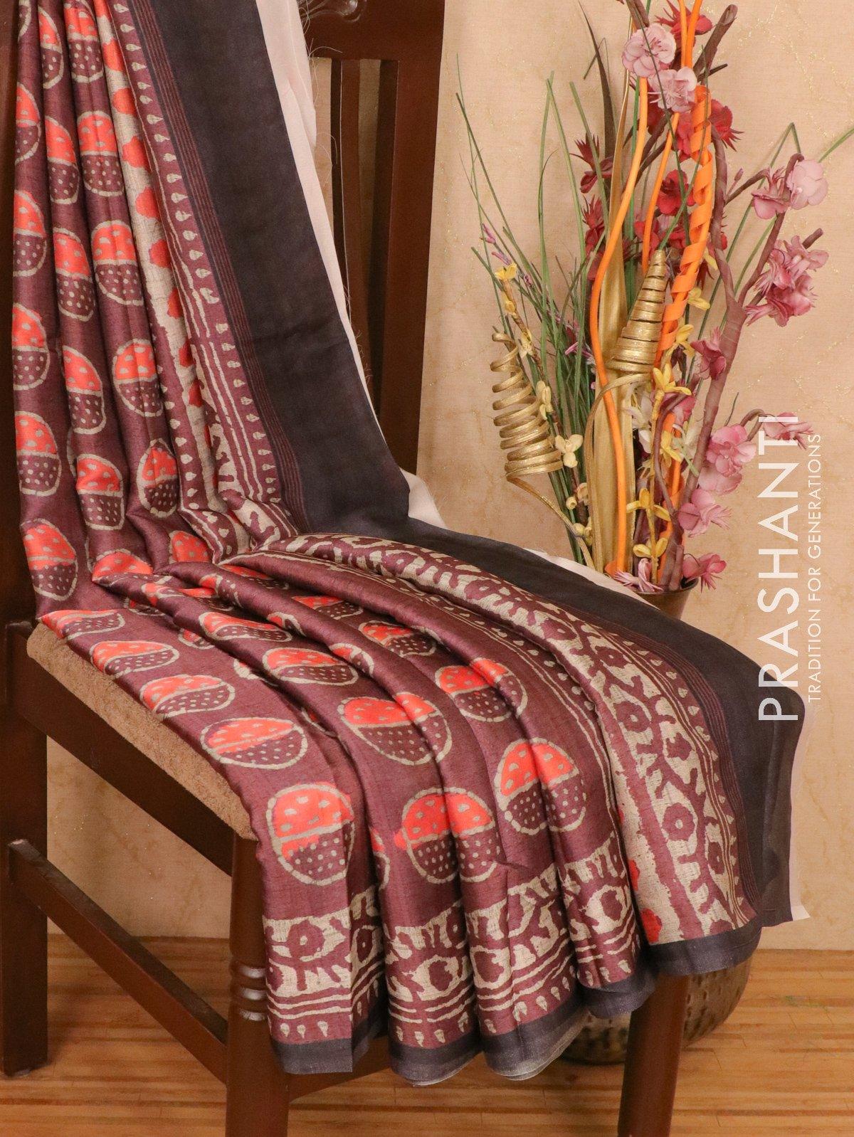 Satin saree wine shade with allover digital prints