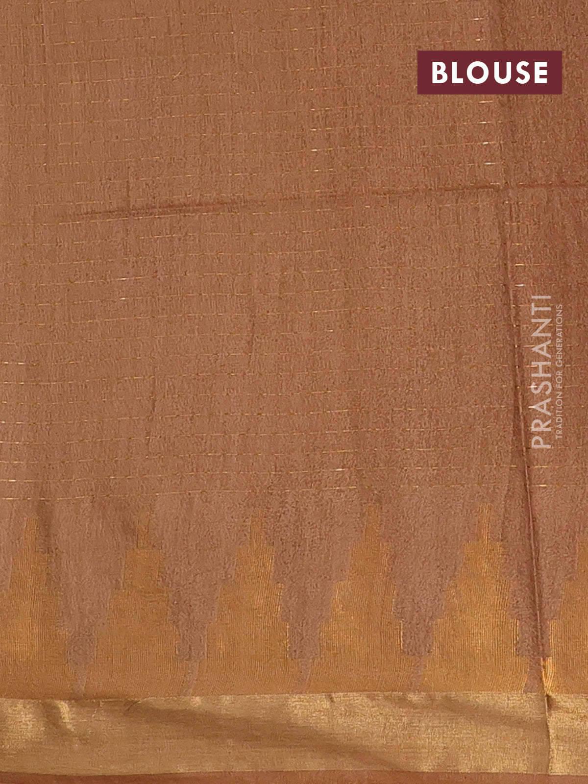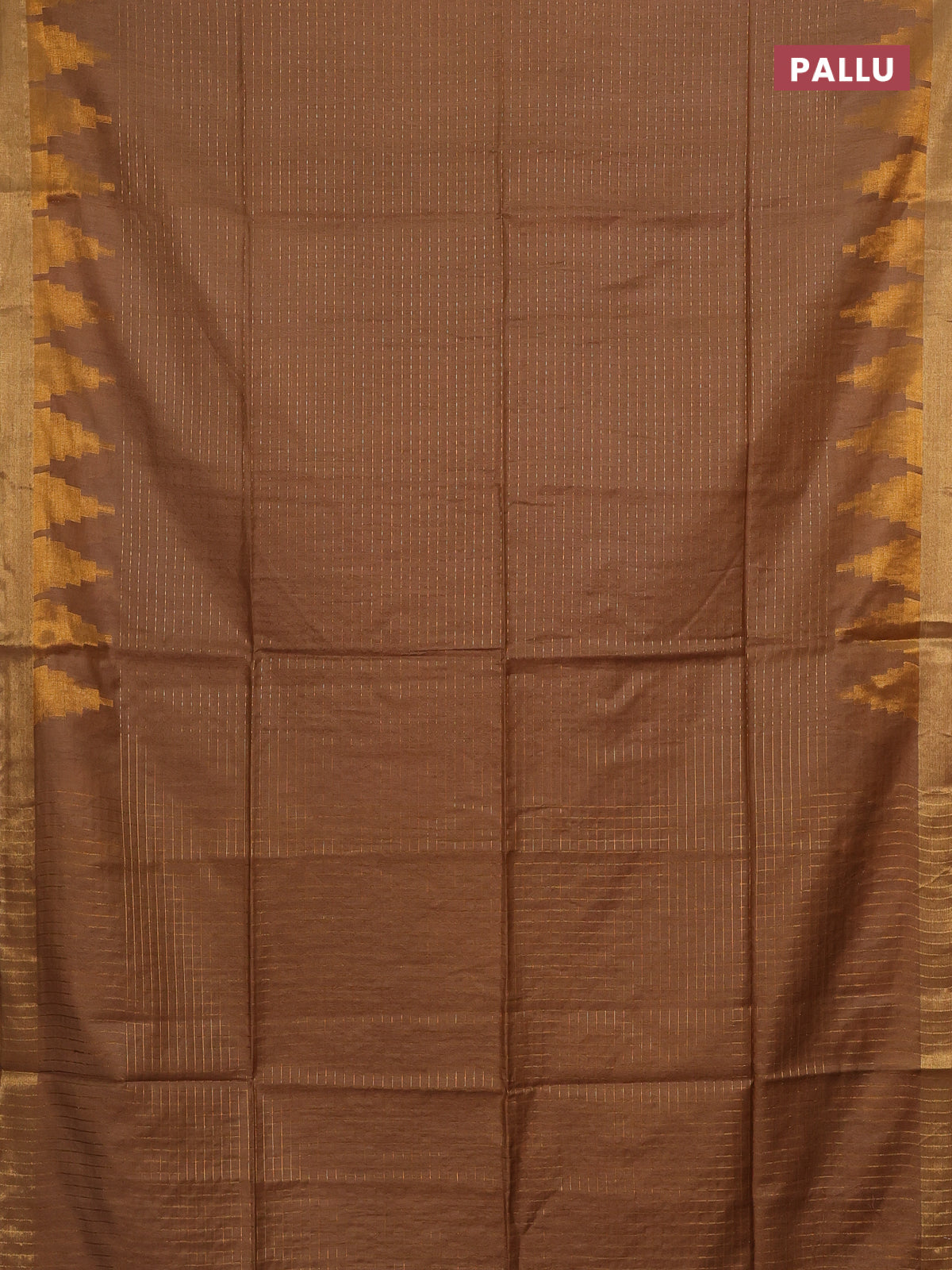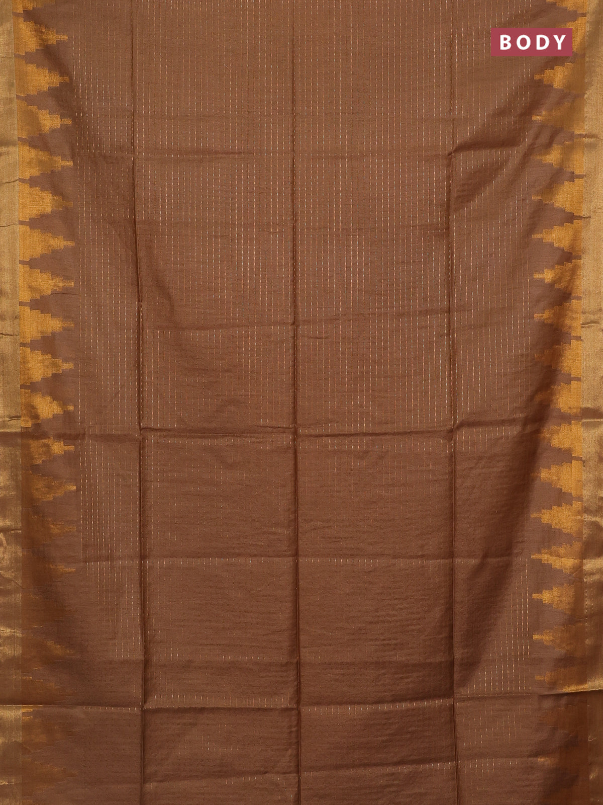 Semi bamboo saree brown with allover zari weaves and temple design zari woven border