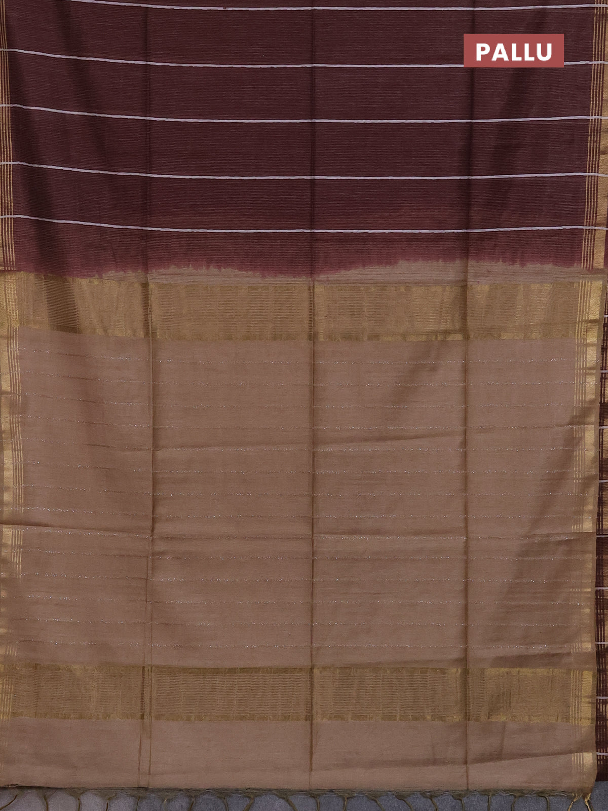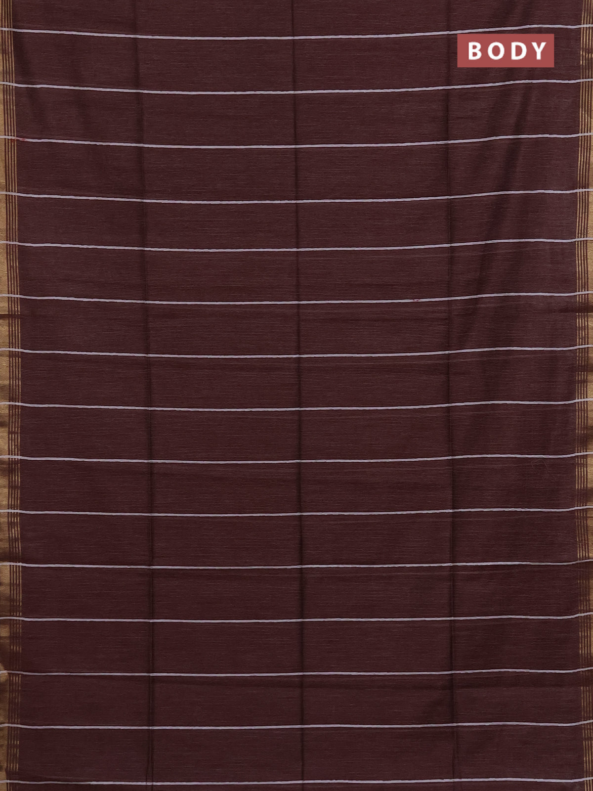 Semi bamboo saree deep maroon with stripes pattern and zari woven border