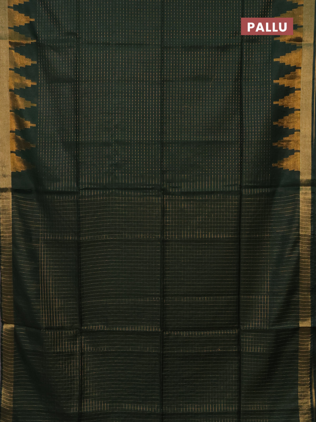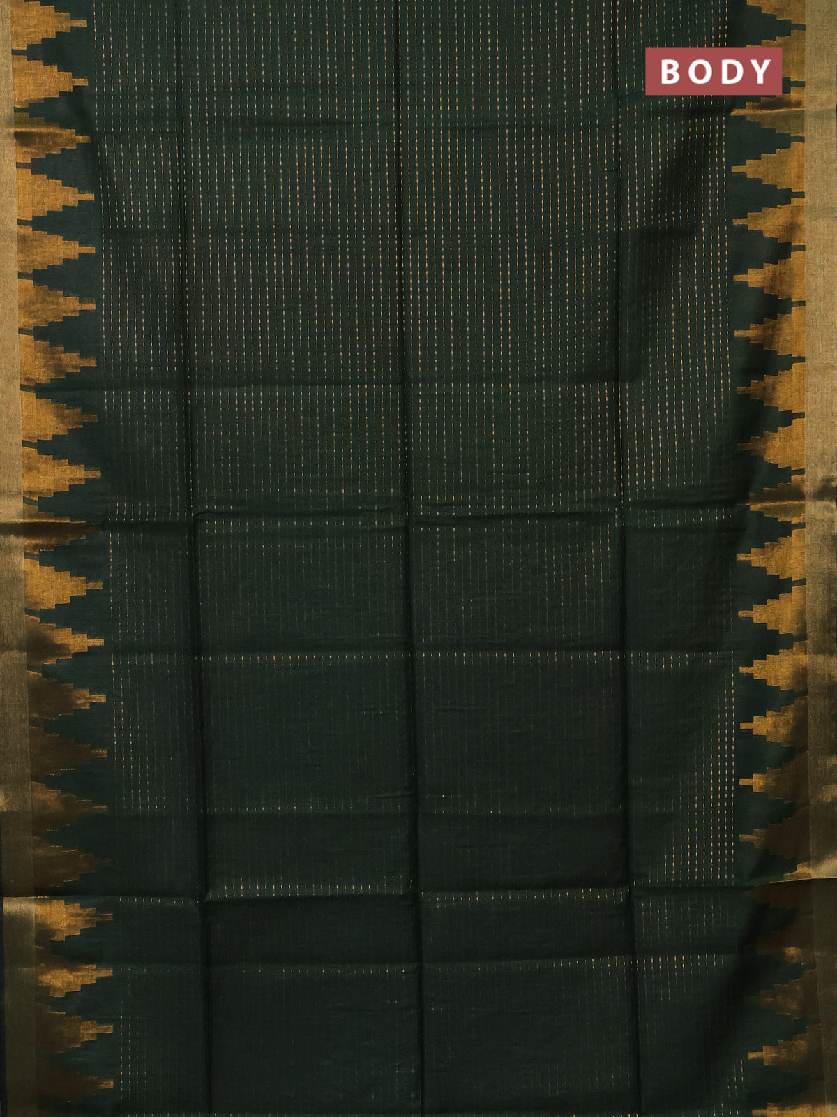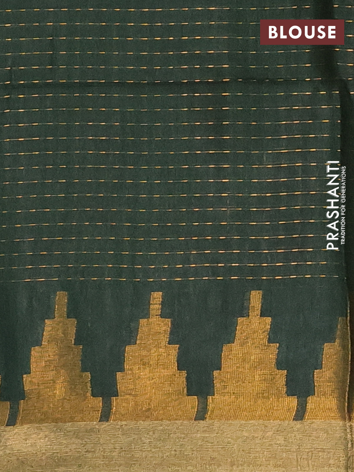Semi bamboo saree green with allover zari weaves and temple design zari woven border