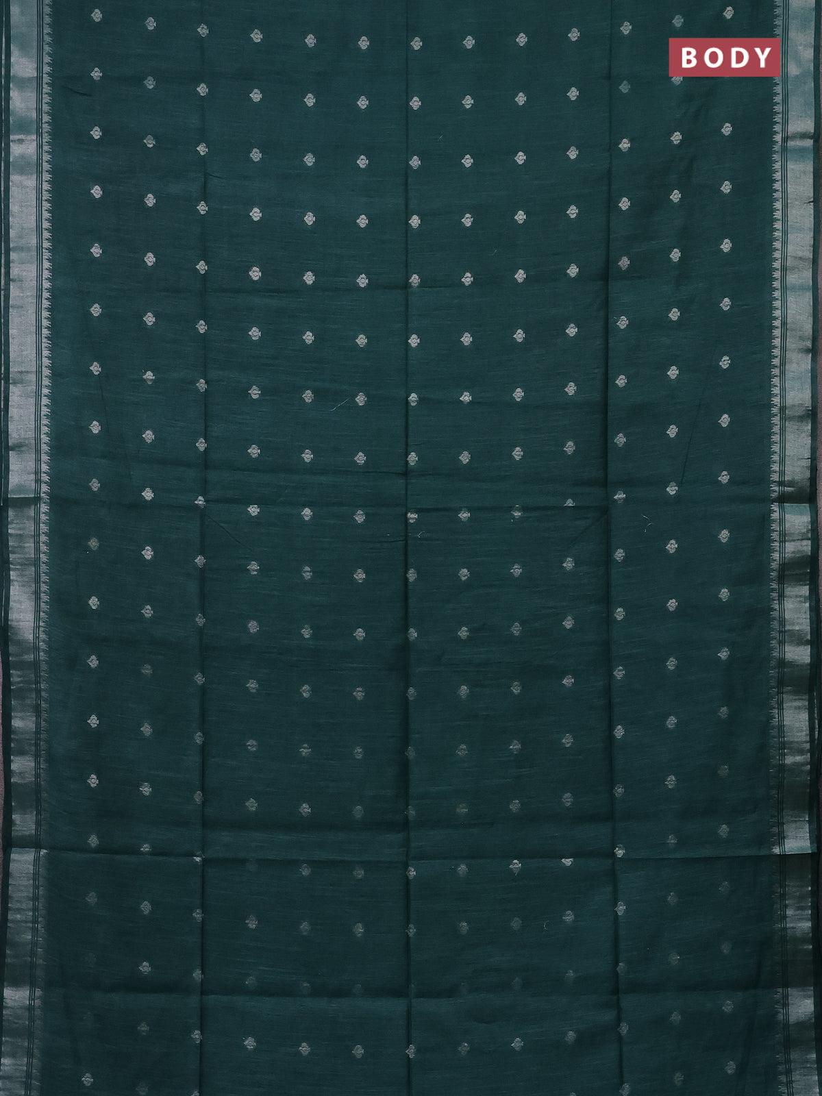 Semi bamboo saree green with zari woven buttas and zari woven border