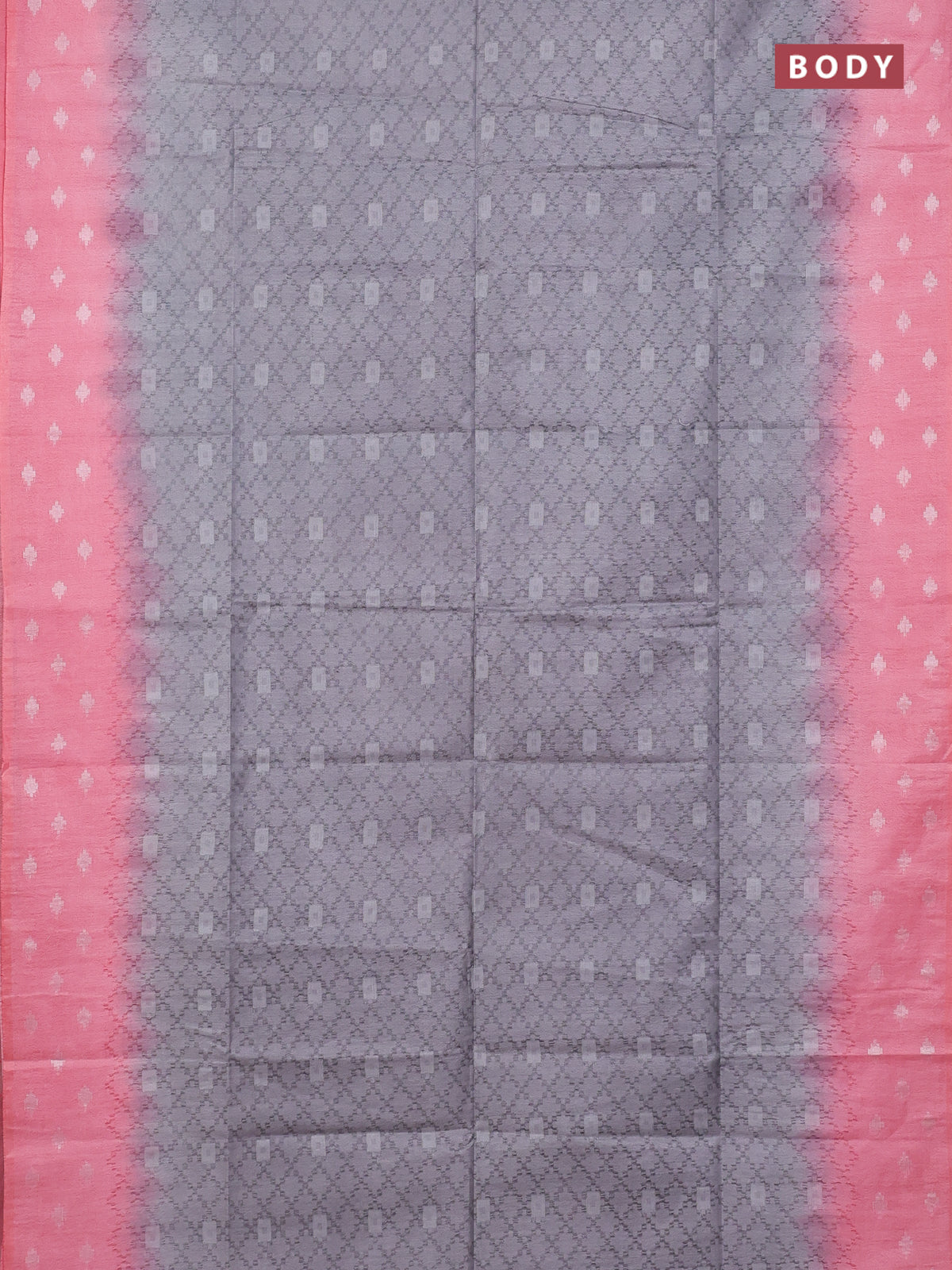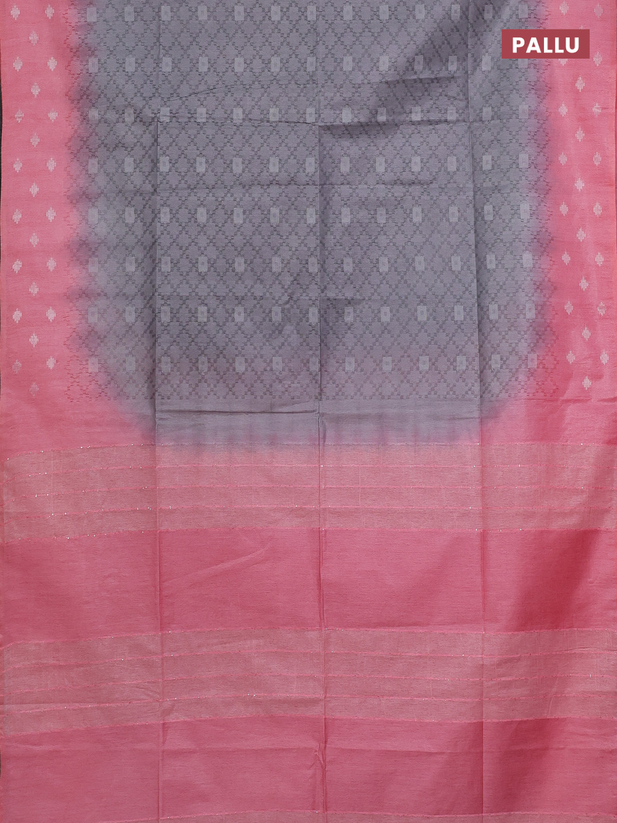 Semi bamboo saree grey and peach pink with allover thread weaves and sequin work pallu