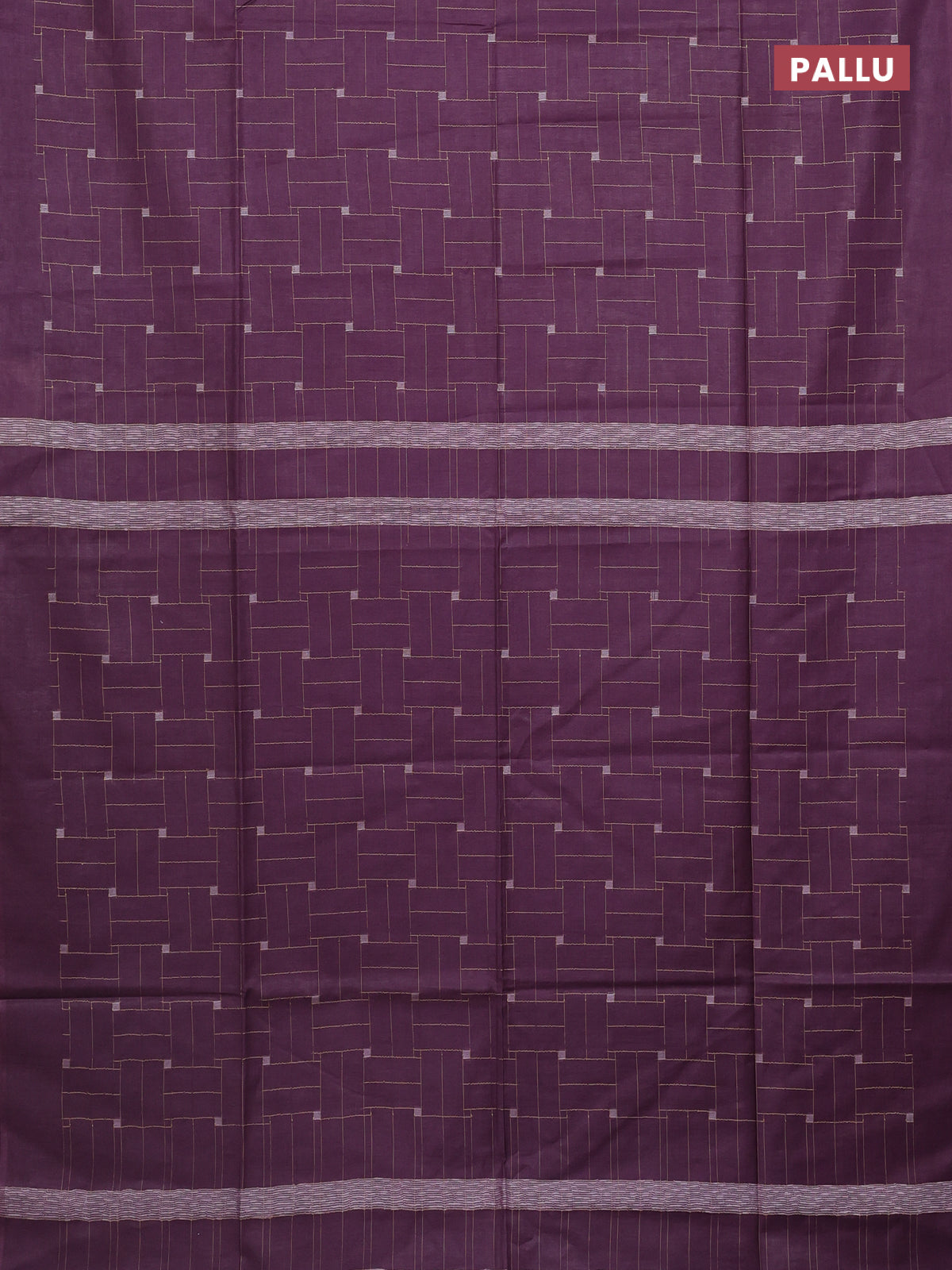 Semi bamboo saree lavender with allover thread weaves in borderless style