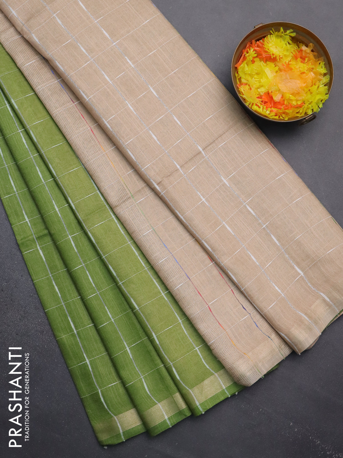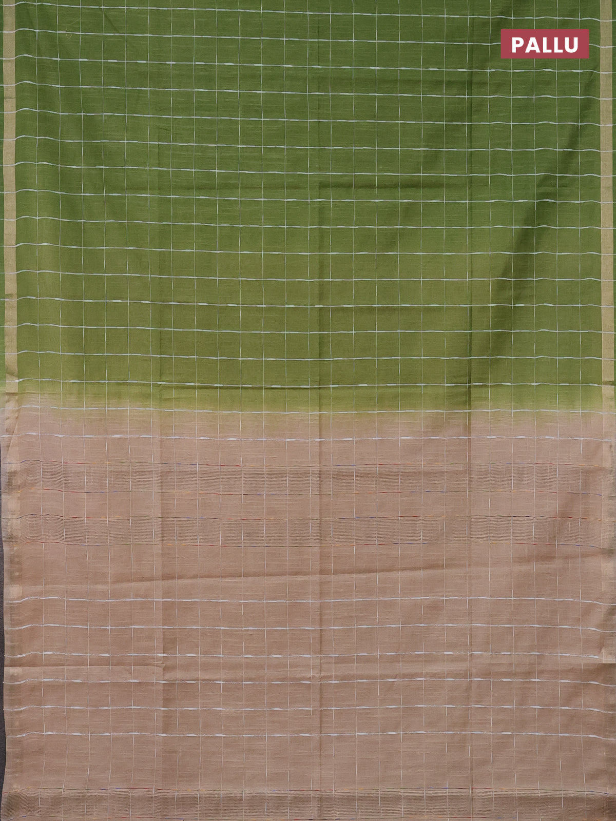 Semi bamboo saree light green and sandal with checked pattern and zari woven border