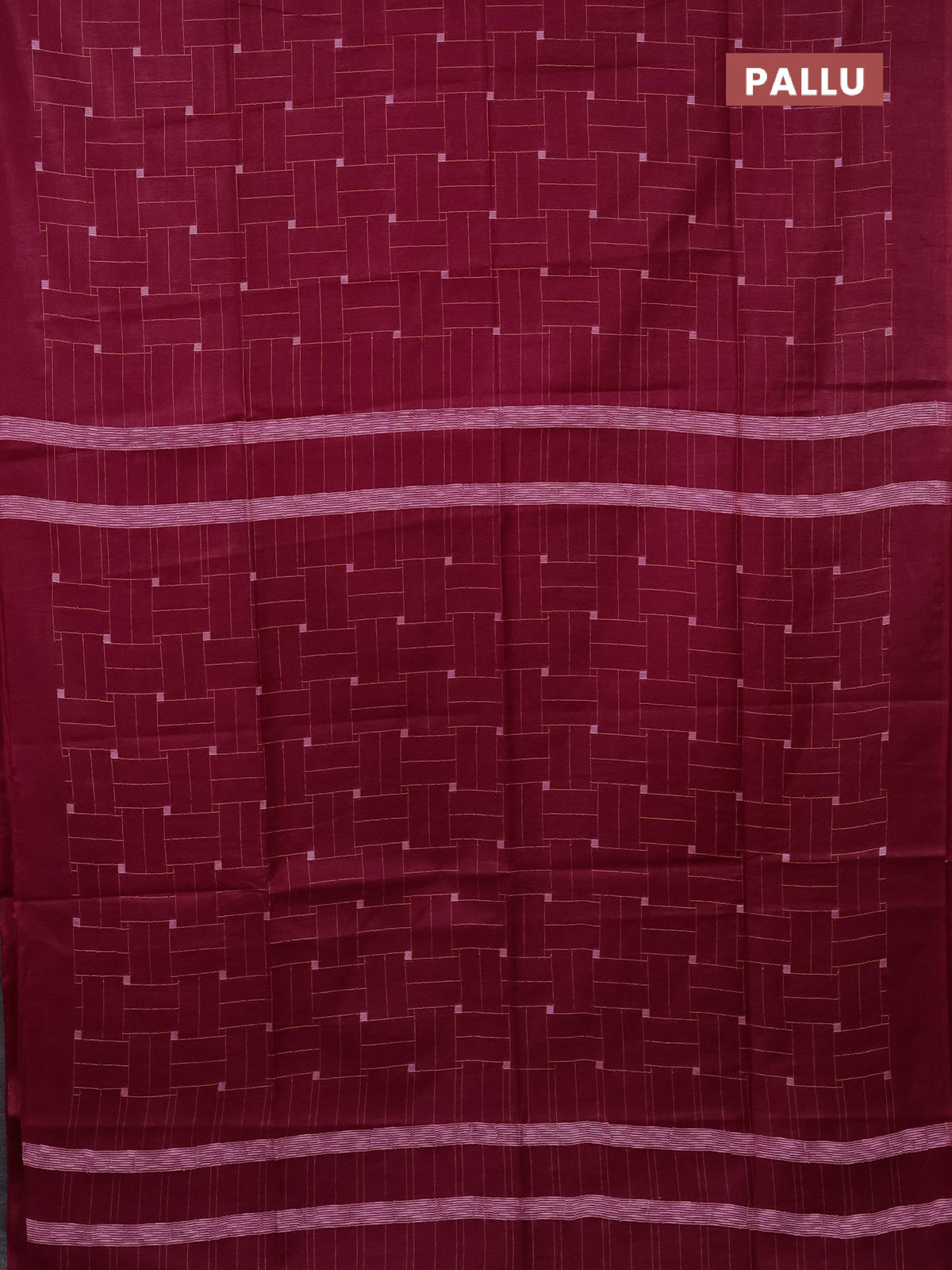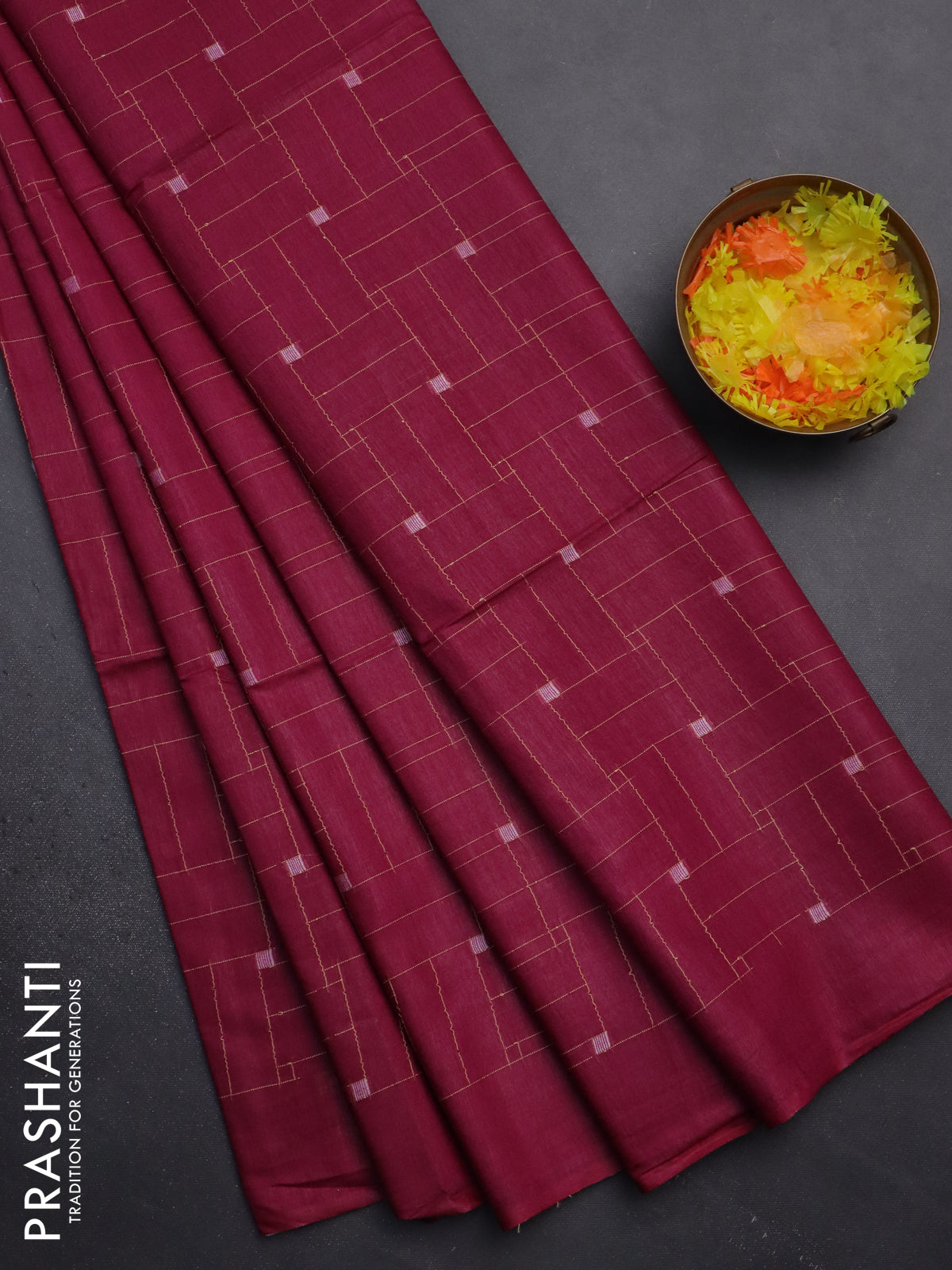 Semi bamboo saree magenta pink with allover thread weaves in borderless style