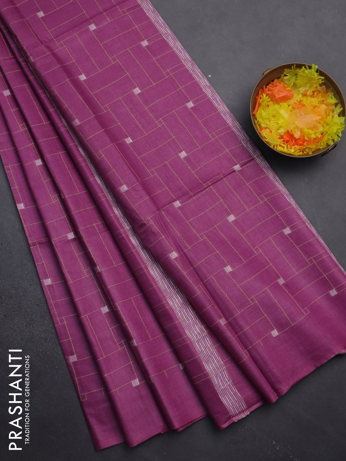 Semi bamboo saree magenta pink with allover thread weaves in borderless style