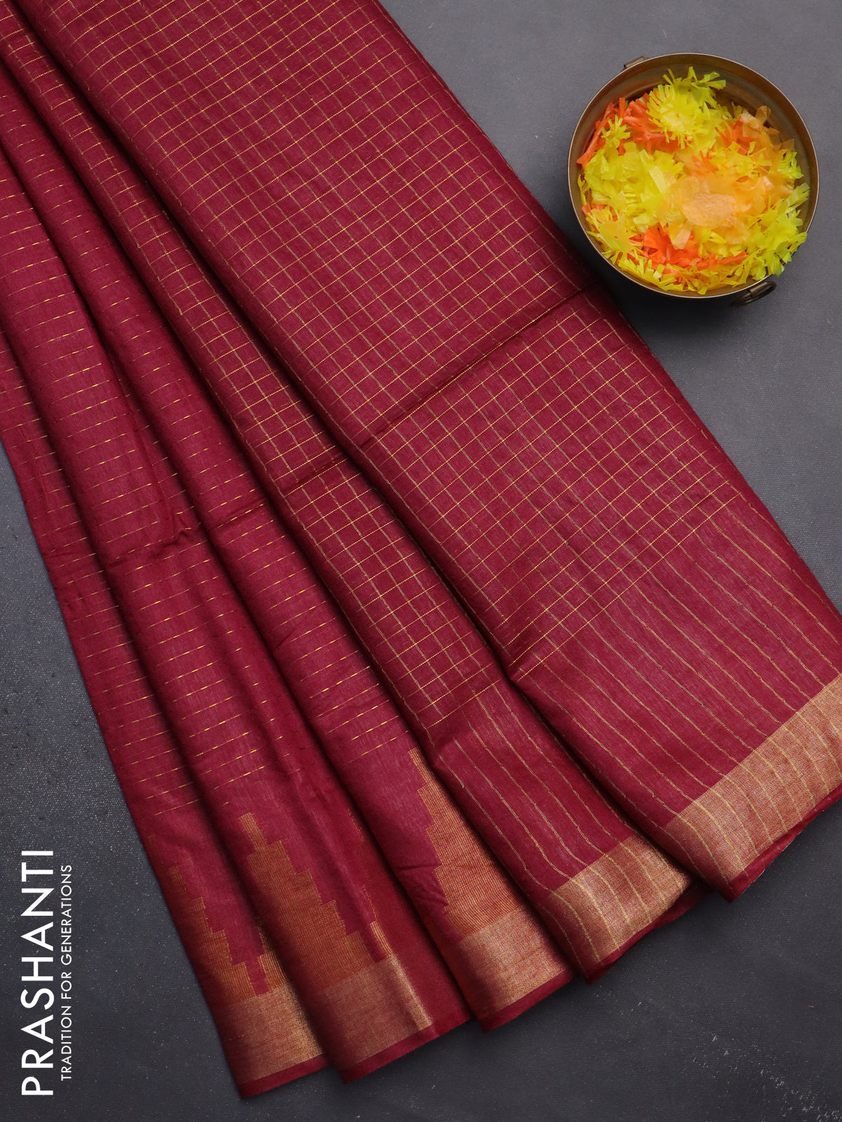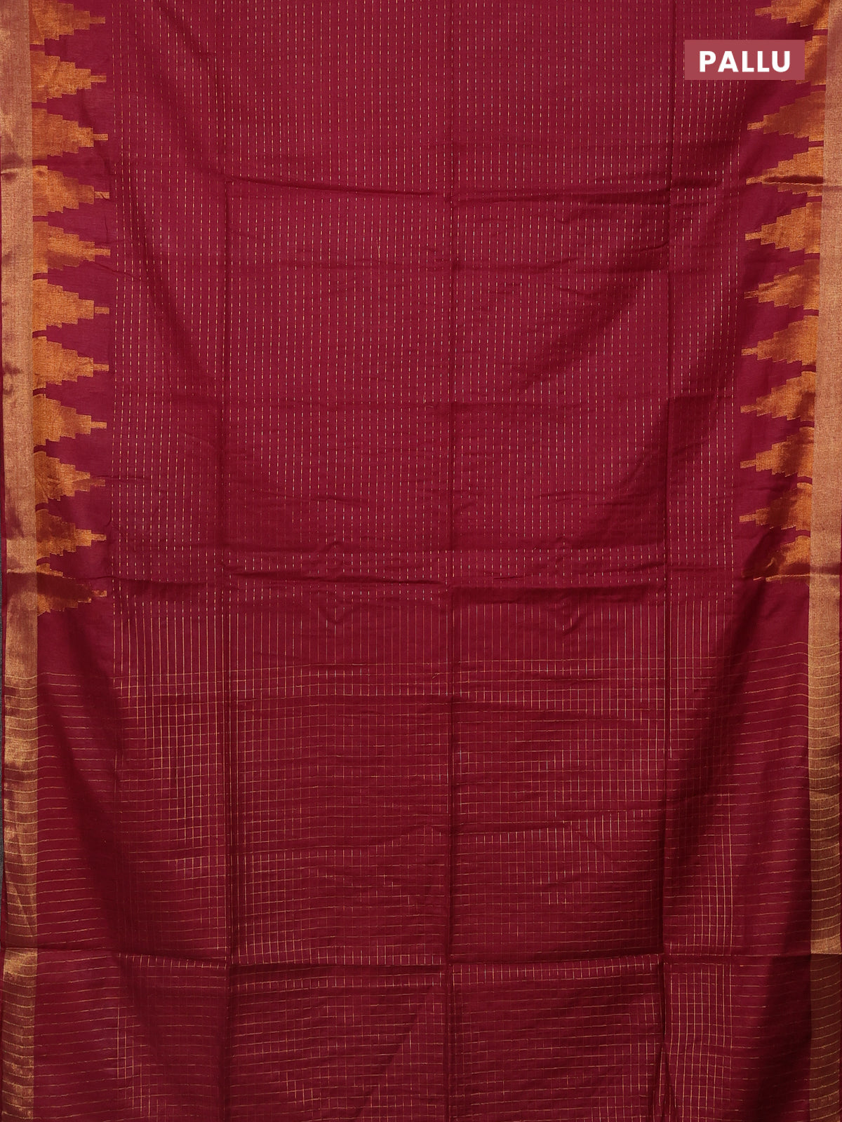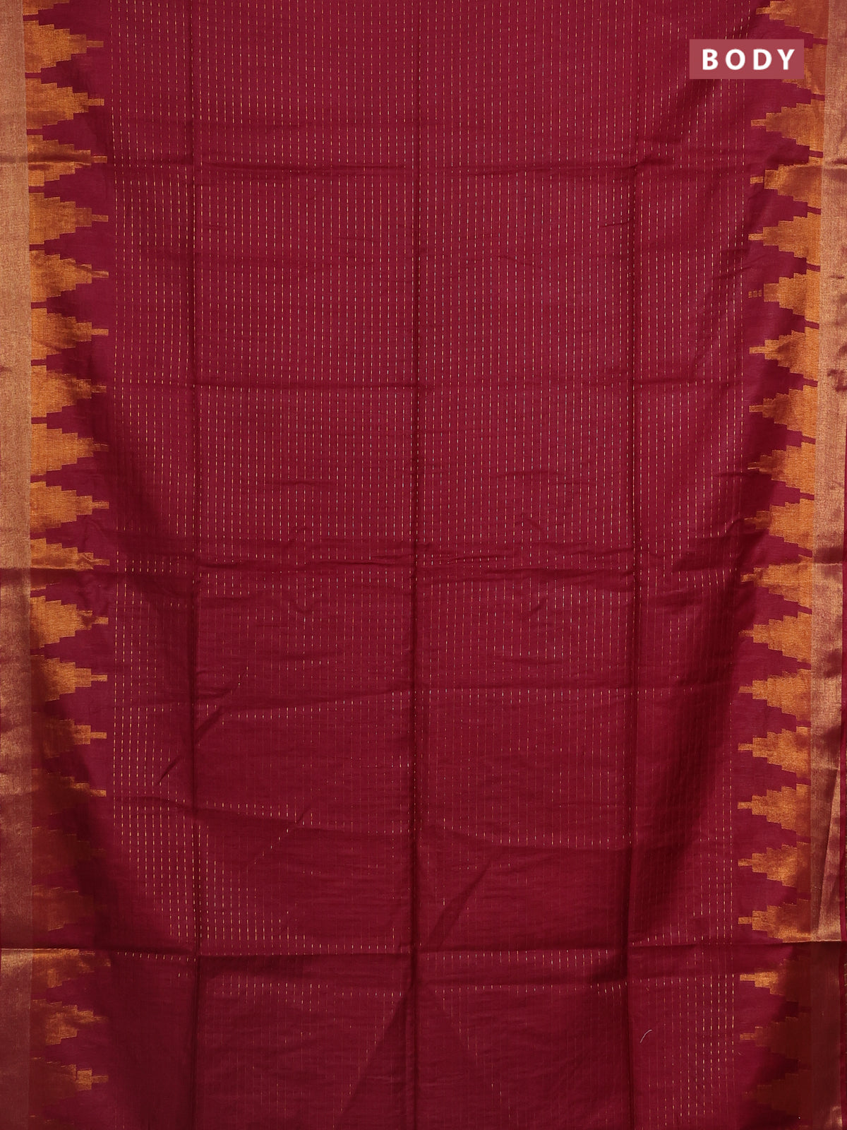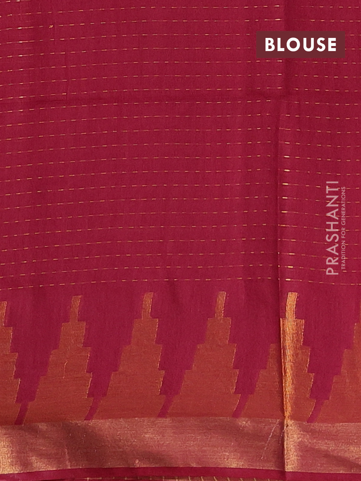 Semi bamboo saree magenta pink with allover zari weaves and temple design zari woven border