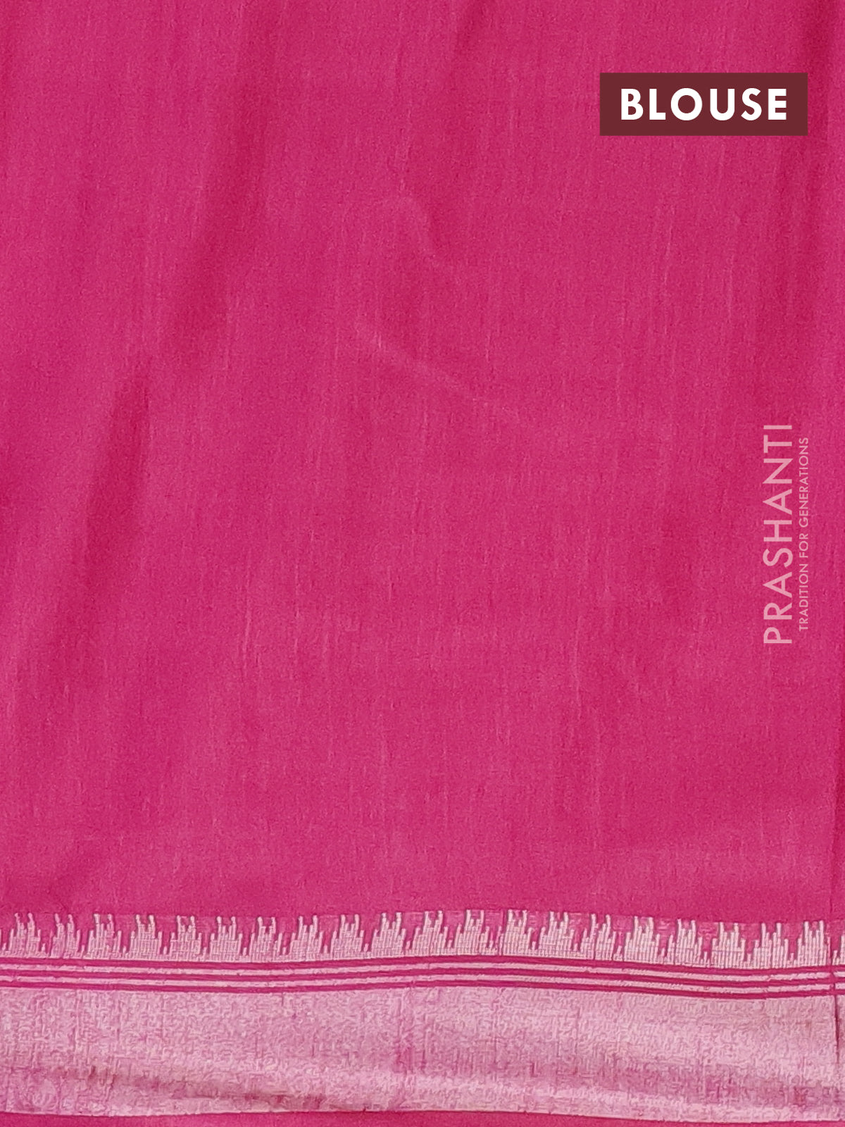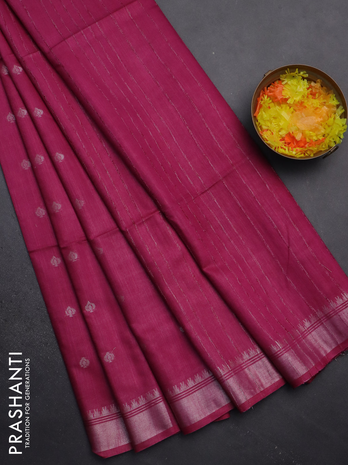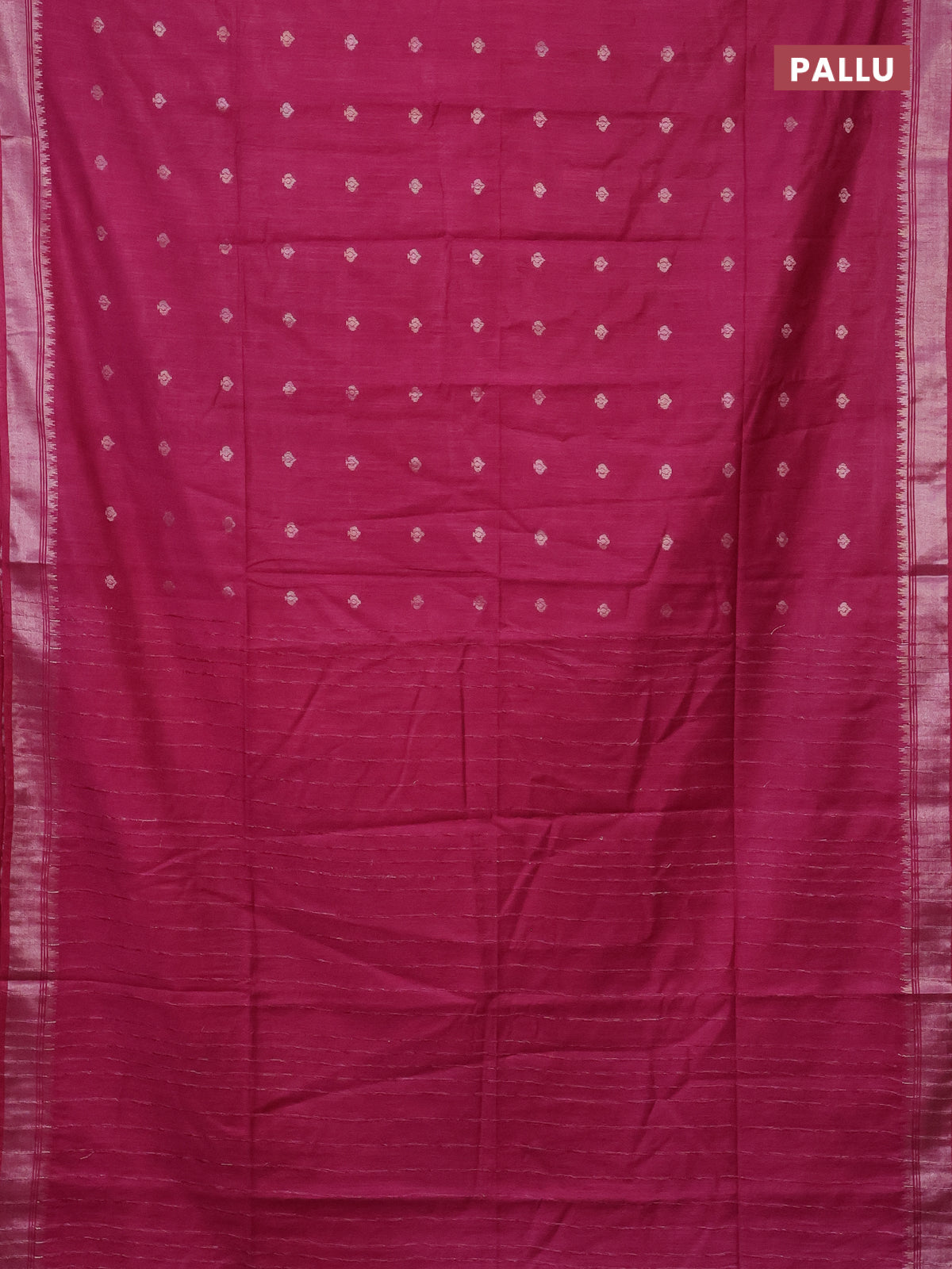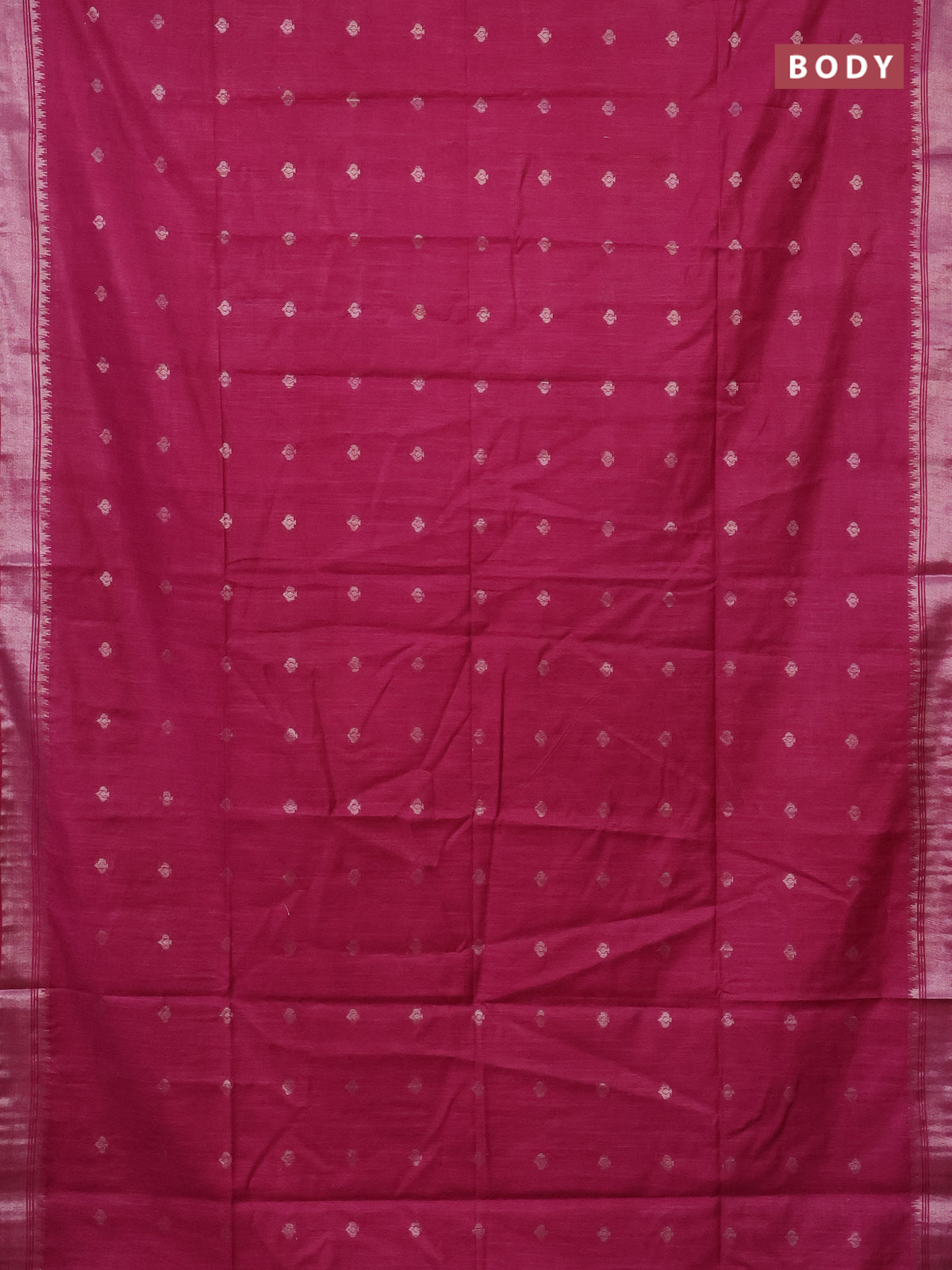 Semi bamboo saree magenta pink with zari woven buttas and zari woven border