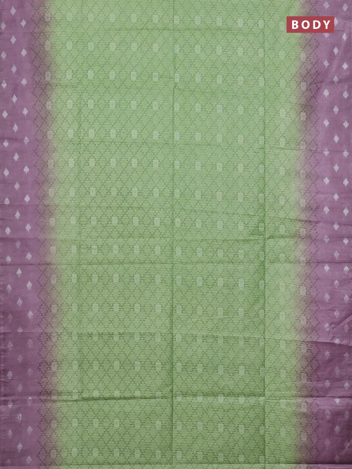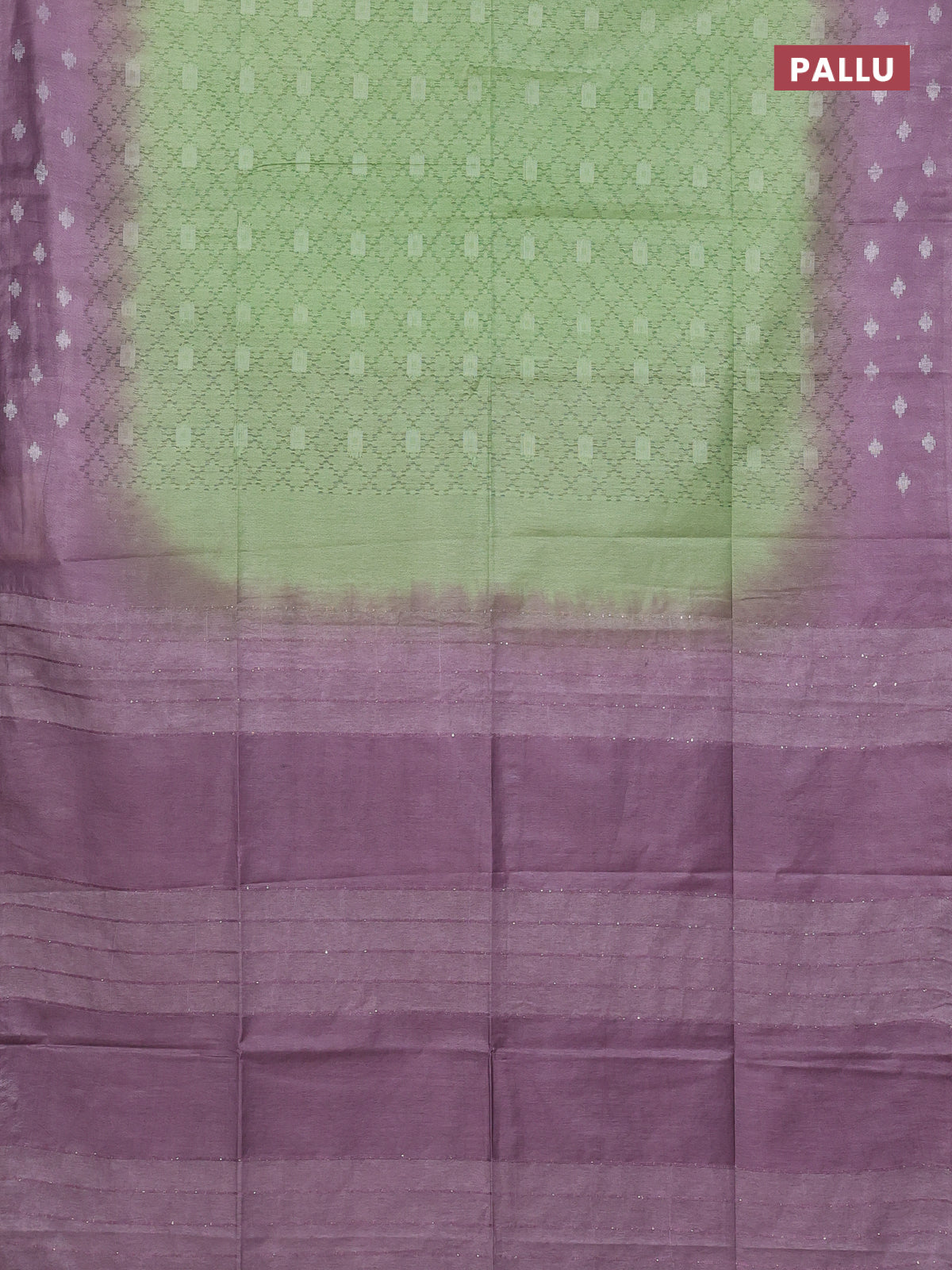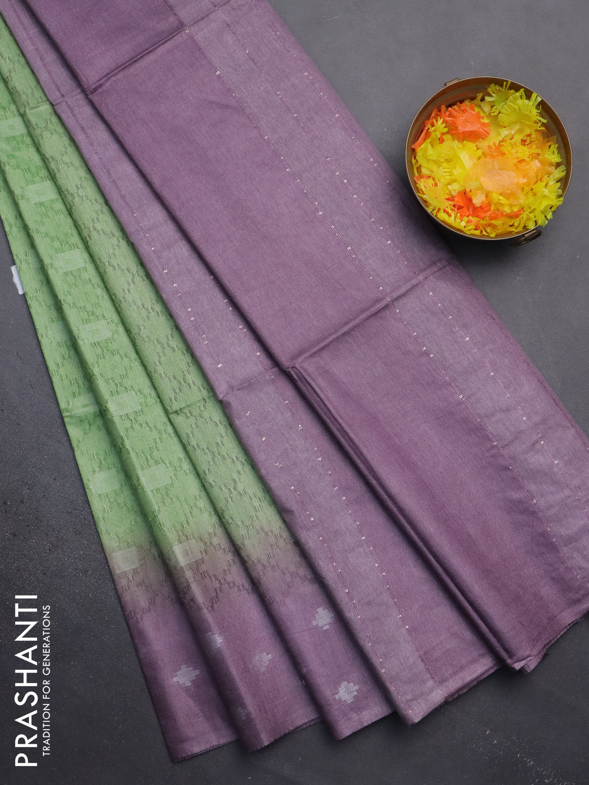Semi bamboo saree pastel green and mild purple with allover thread weaves and sequin work pallu