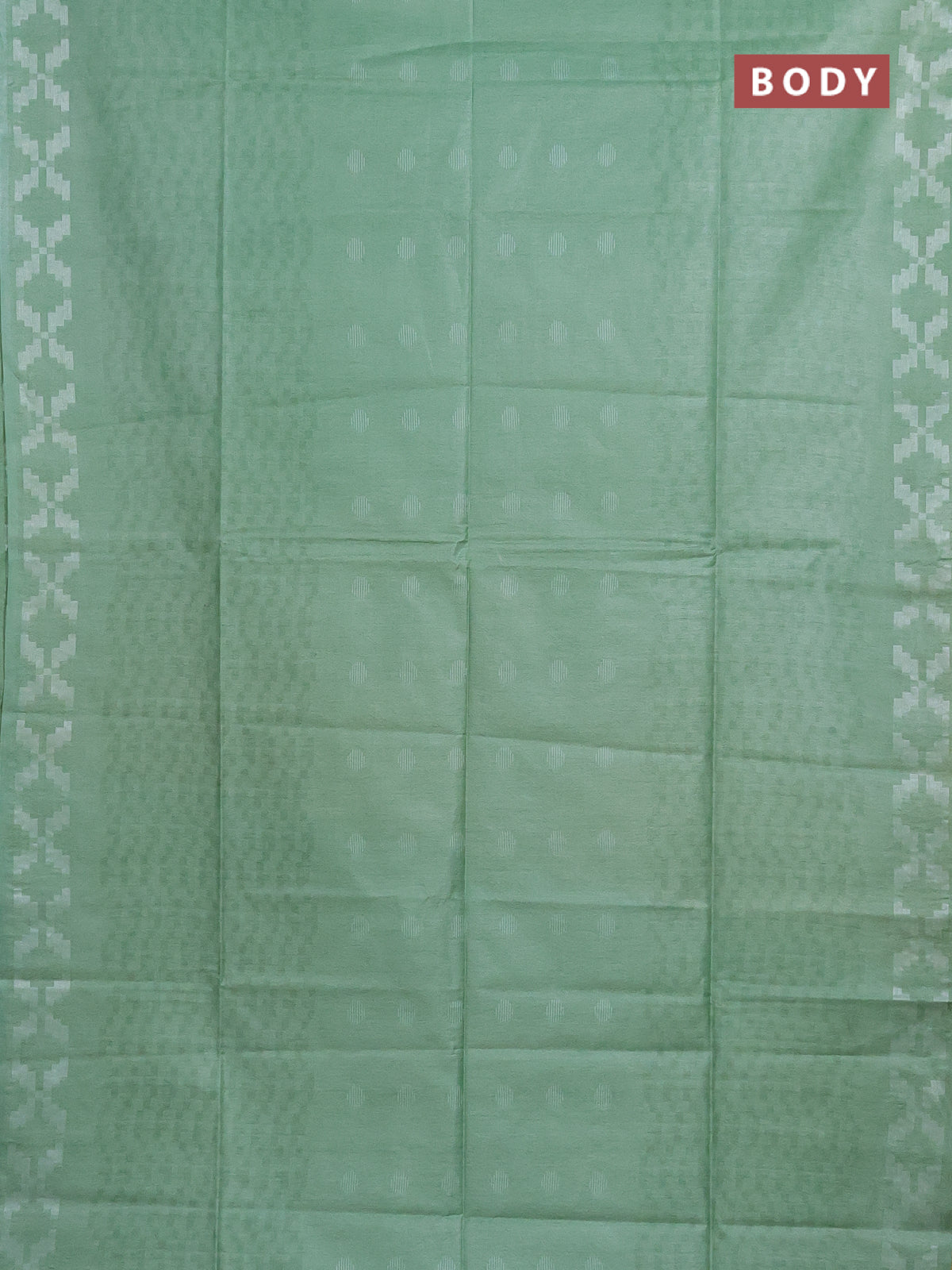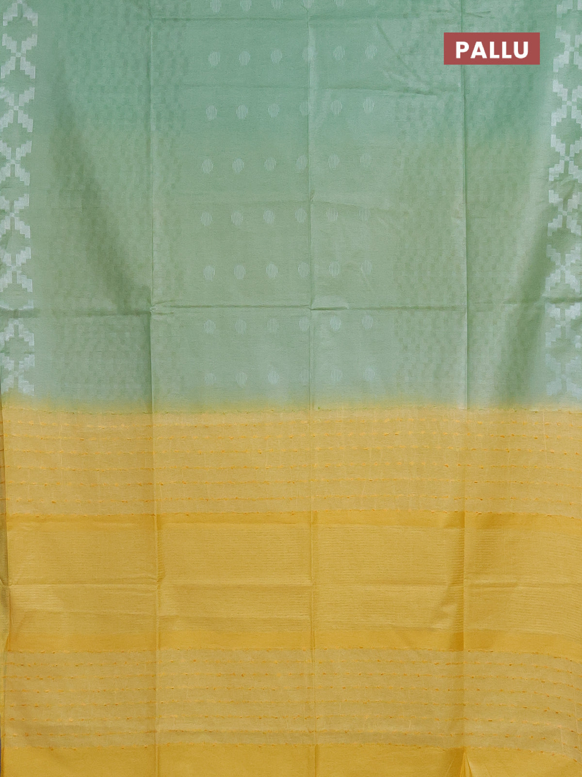 Semi bamboo saree pastel green and yellow with allover thread weaves and simple border