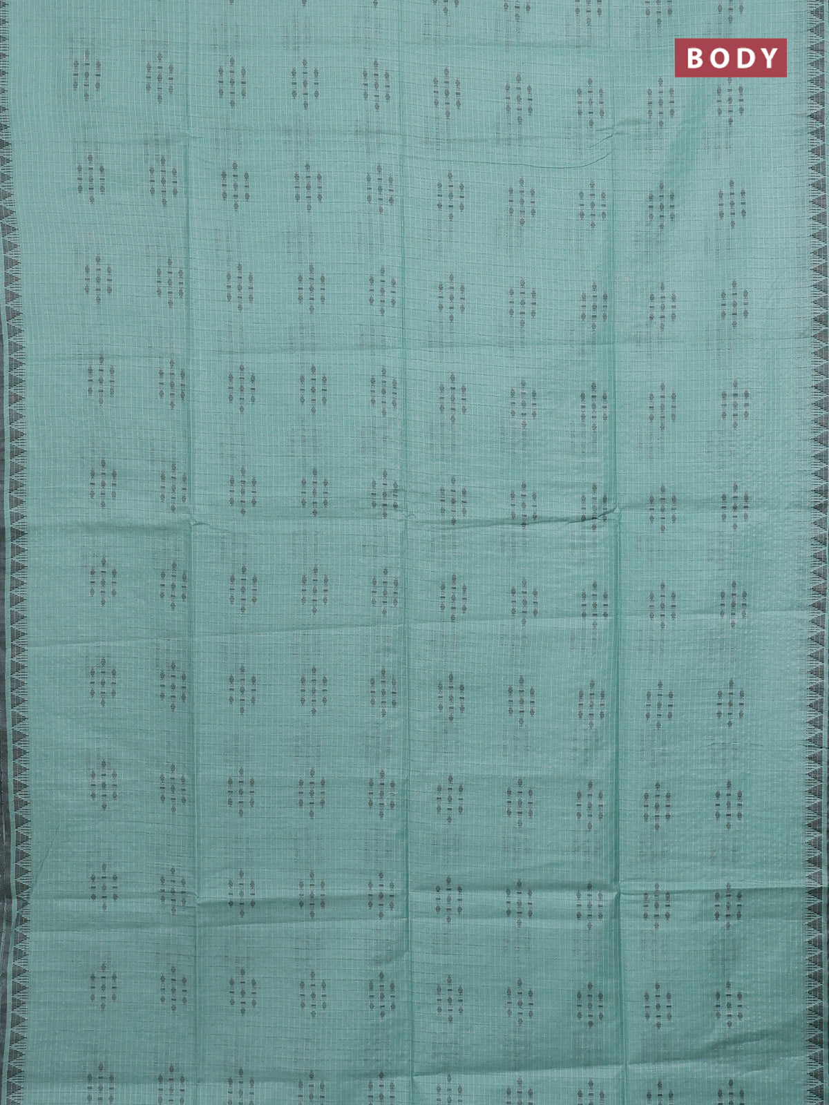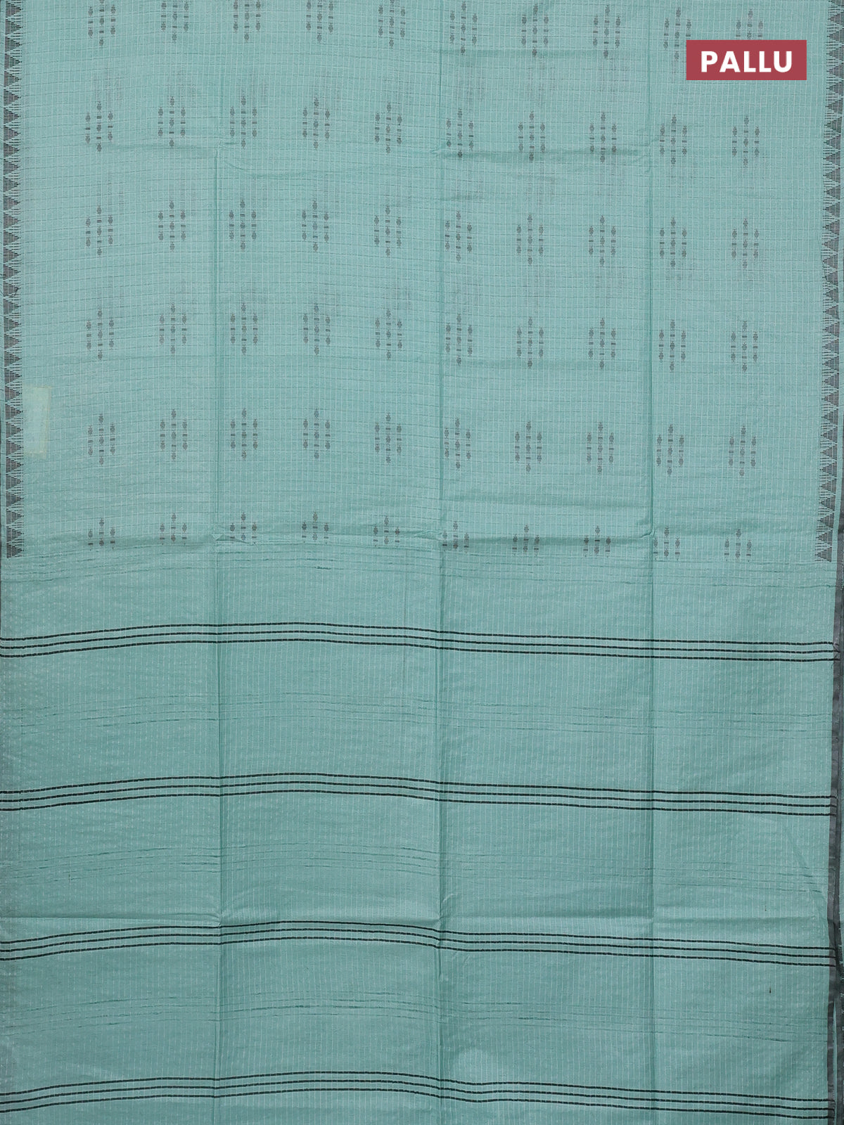 Semi bamboo saree pastel green with allover checked pattern & thread buttas and woven border