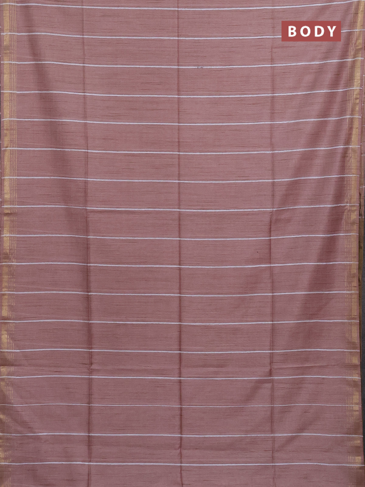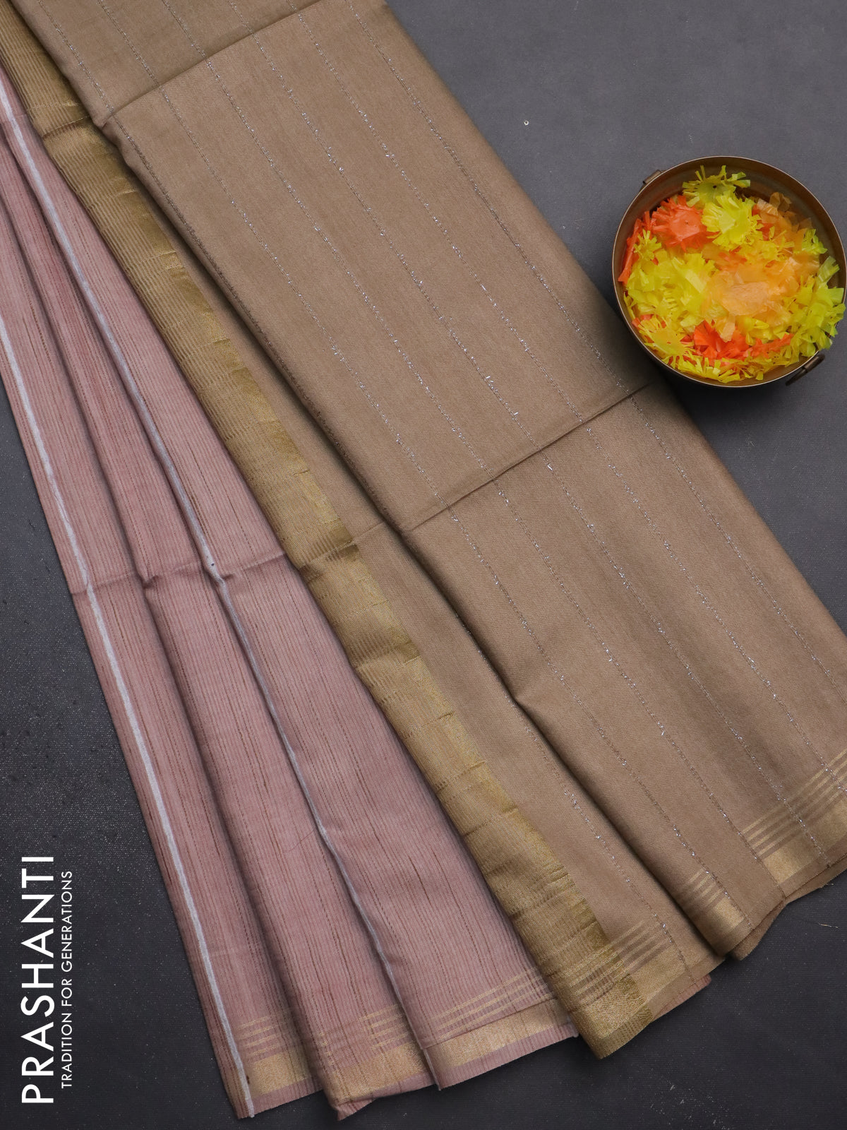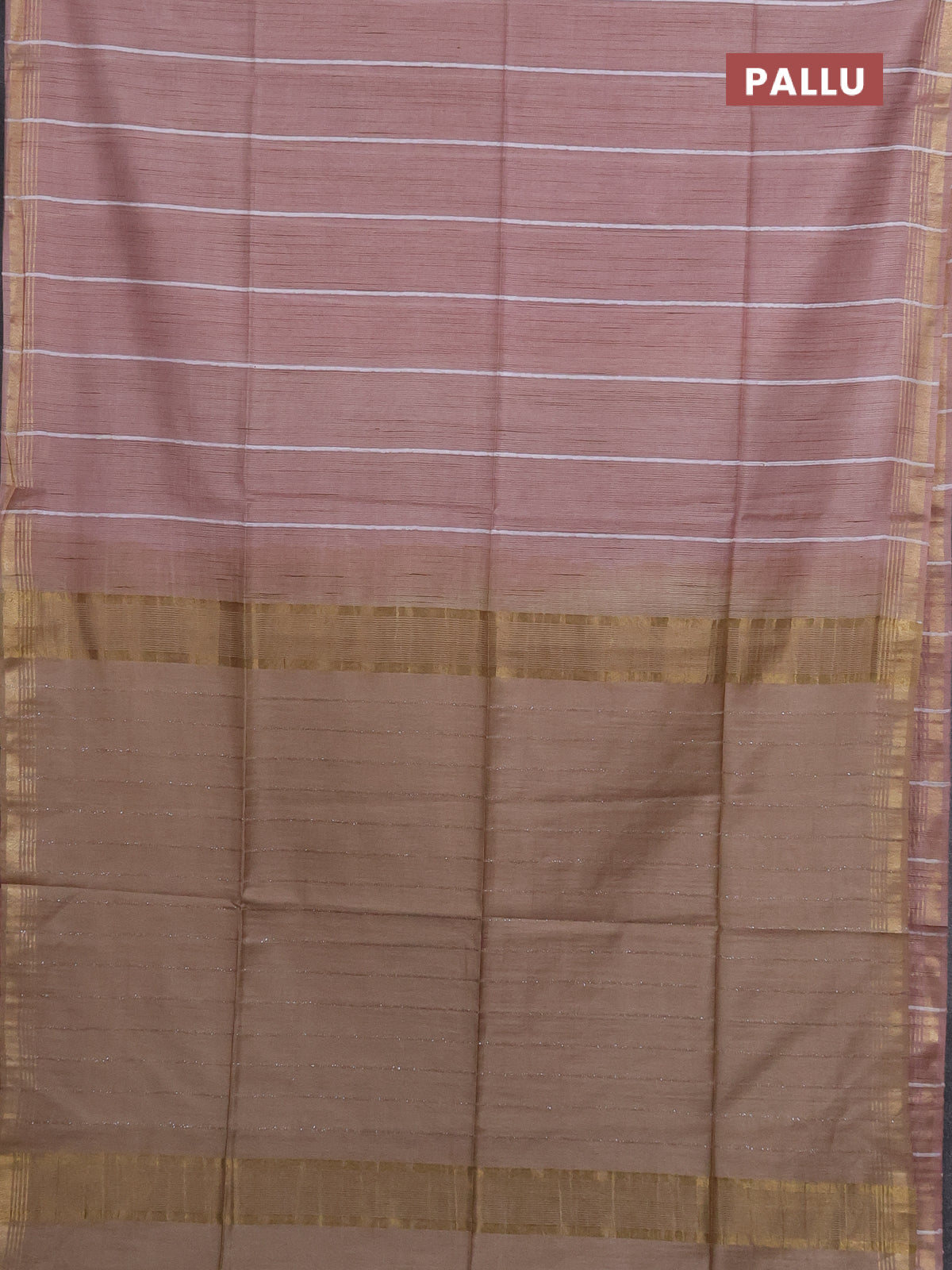 Semi bamboo saree pastel pink with stripes pattern and zari woven border