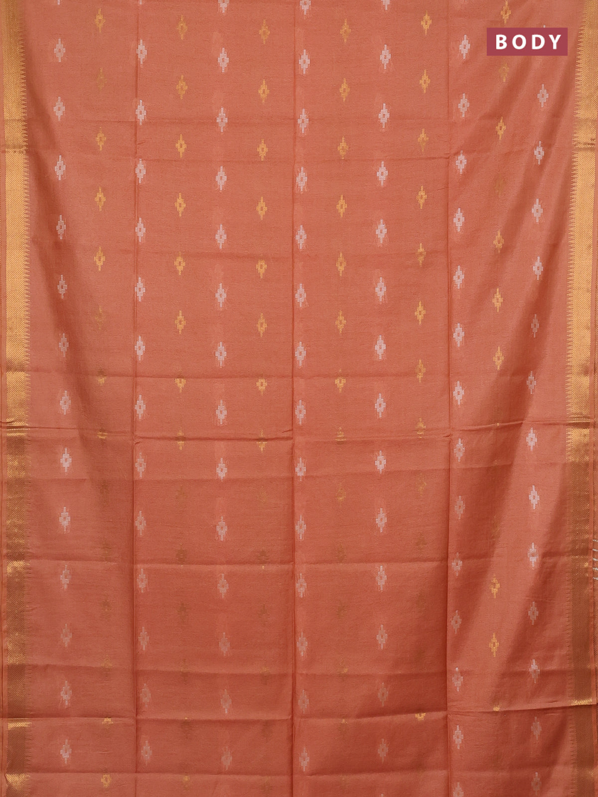 Semi bamboo saree peach orange with thread & zari woven buttas and zari woven border