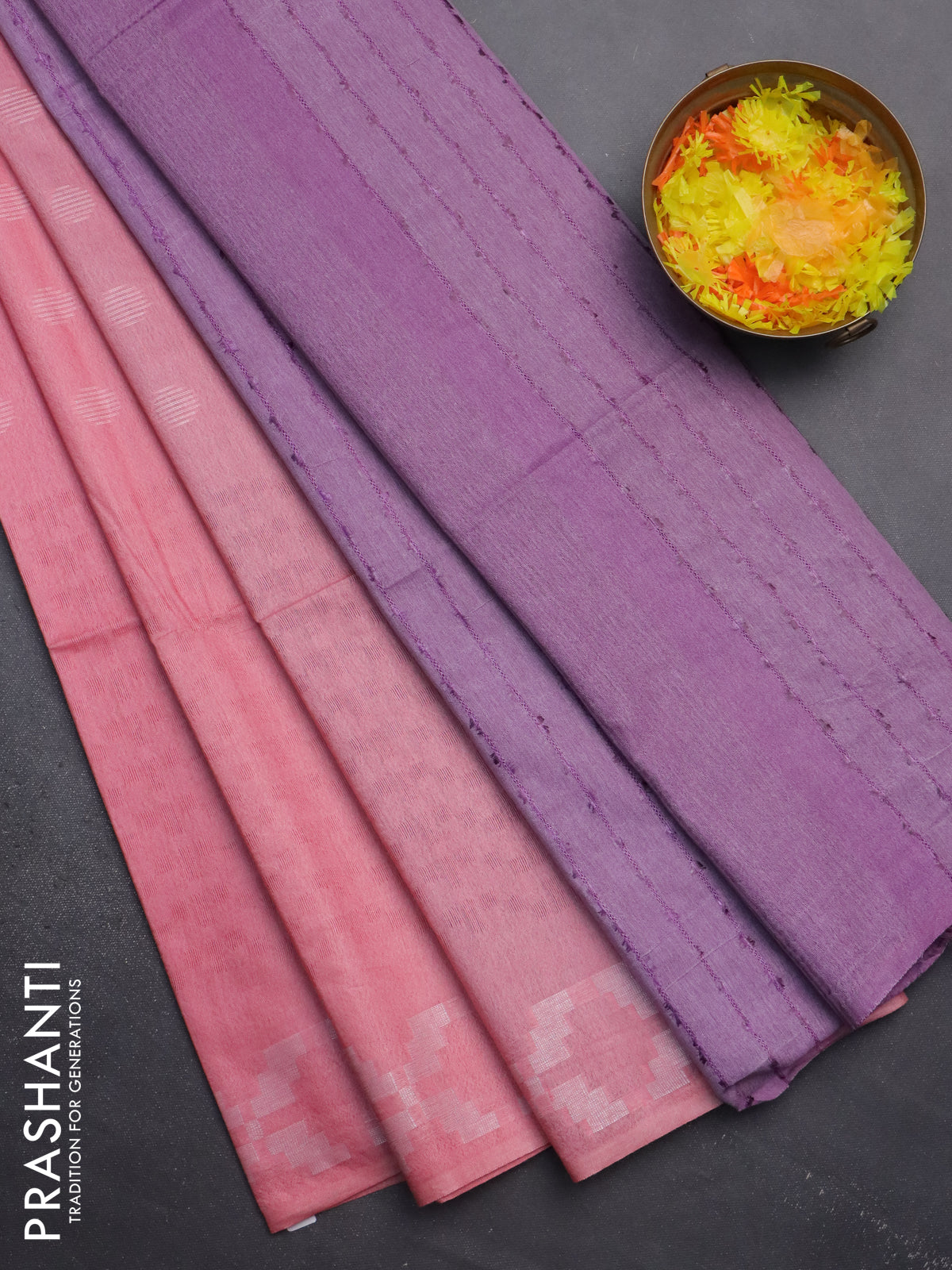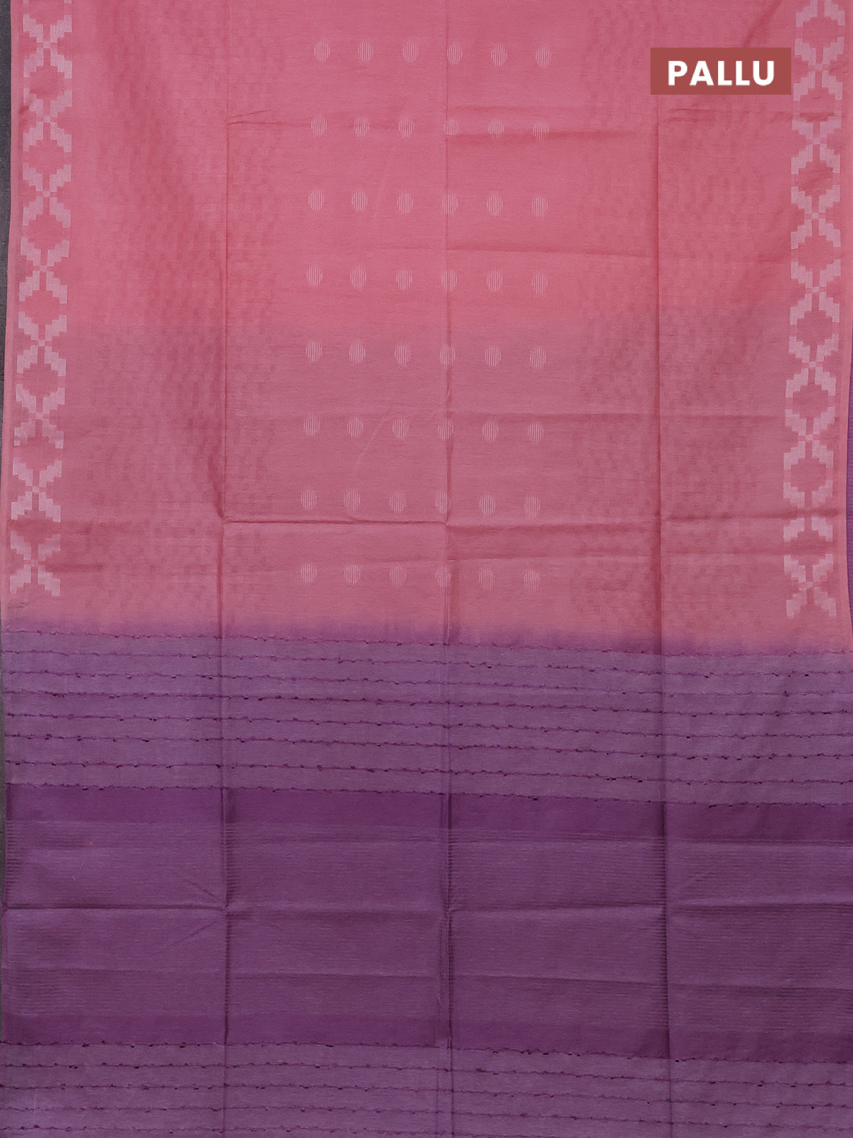 Semi bamboo saree peach pink and lavender with allover thread weaves and simple border