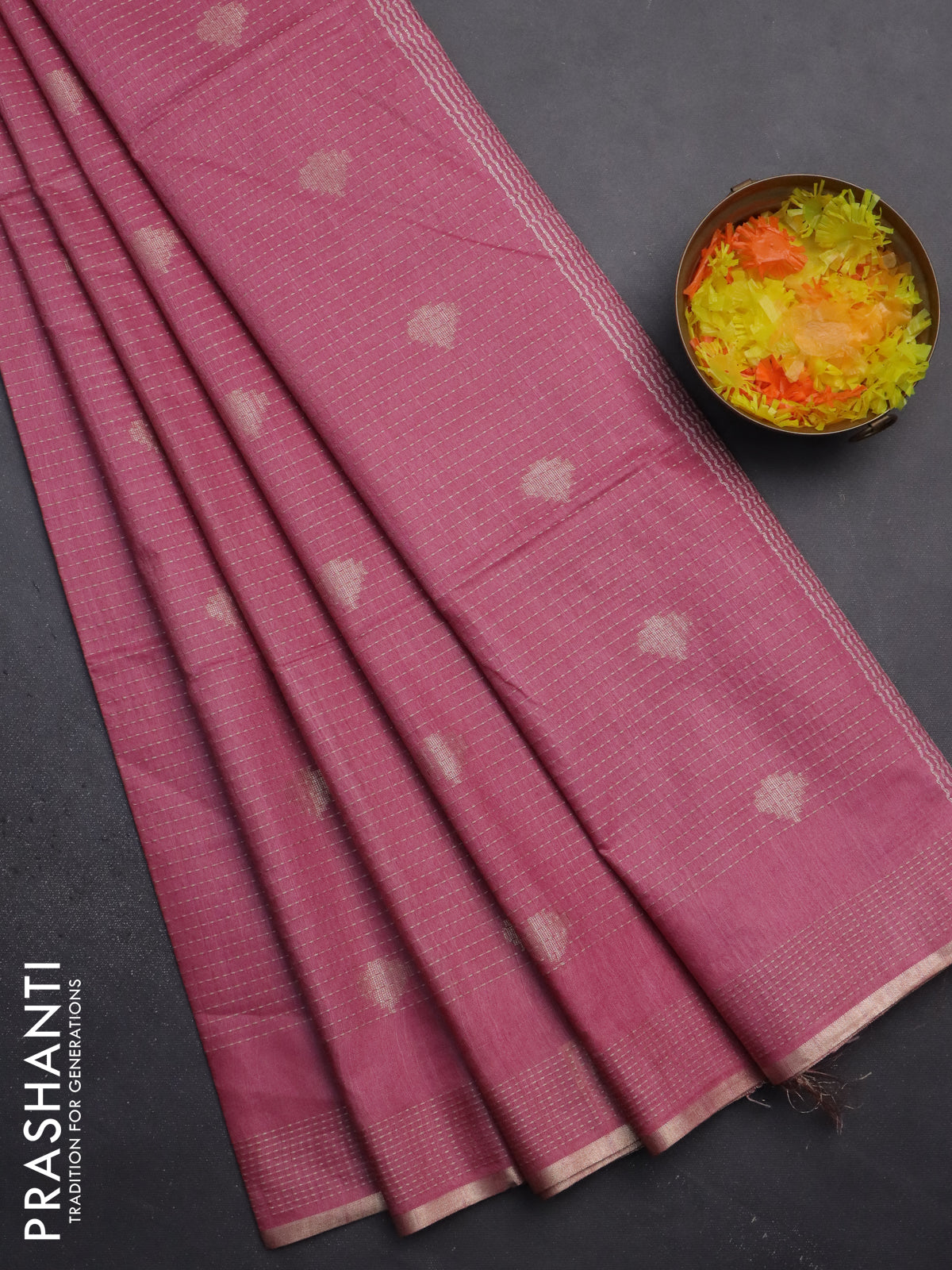 Semi bamboo saree pink shade with allover thread weaves & zari buttas and zari woven piping border